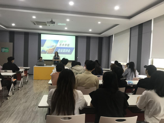 5月26日下午,艺术学院在A楼二层培训中心举办面对2021届毕业生的就业创业宣讲会。上海摩绘广告传媒有限公司、苏州绿团家饰有限公司、苏州沙米宁装饰工程有限公司以及上海域圆信息科技有限公司等四家企业到会。艺术学院就业辅导员顾英佳老师,以及全体2018级学生参加了本次宣讲会。