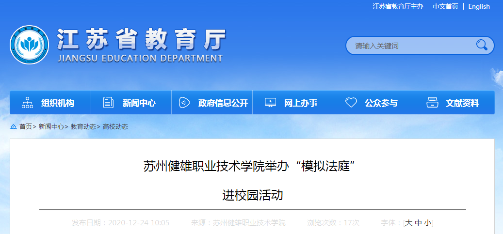为进一步推进法治宣传教育,不断强化校园安全管理,预防和减少校园违法犯罪案件的发生,提高同学们的法律意识和自我保护能力,近日,苏州健雄职业技术学院2020年“模拟法庭”正式开庭。近1000