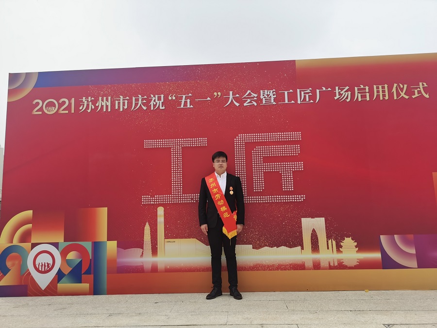 4月28日,我院毕业生张江辉受邀参加苏州市庆祝“五一”大会暨工匠广场启用仪式。他是我院建院以来,首位获得苏州市级劳动模范称号的毕业生。