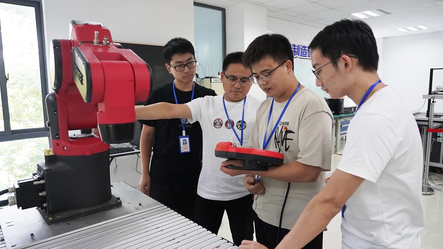 走上工作岗位后,张江辉一心扑在事业上,任劳任怨,发挥专业优势,与同事们一道攻克了一个又一个难题,取得了一批科技成果。2019年3月,所里派张江辉赴安徽省合肥市,独立完成当地一家上市公司的研发项目:恒温老化房的恒温控制系统。按照合同规定,他只需三天就可以完成任务,而当他准备交付时,客户提出了合同外的新要求,要在上位机定制体现该公司文化理念的界面,完成这样的任务不仅要在PLC与界面之间建立通讯,而且需要具备一定的文化艺术素养。面对困难他没有退缩,他经公司同意后,投入到研发工作中,他到当地的图书馆查阅资料,电话请教单位同事,连续几天几夜加班加点,失败、重来,失败、重来……经过上百次的反复,终于取得了成功,客户激动地说:“没想到,你们对合同外的要求也这么认真地去做,点赞、点赞……”。他还在母校担任兼职教师,他执教的CAD软件、3D打印课颇受学生的欢迎,他与学生打成一片,许多学生尊称他为“辉哥”。大学毕业三年,先后获得了太仓市“五一”劳动奖章、苏州市青年岗位能手、太仓市技能状元、太仓市高技能重点人才等荣誉称号。
