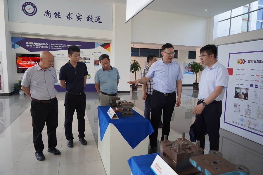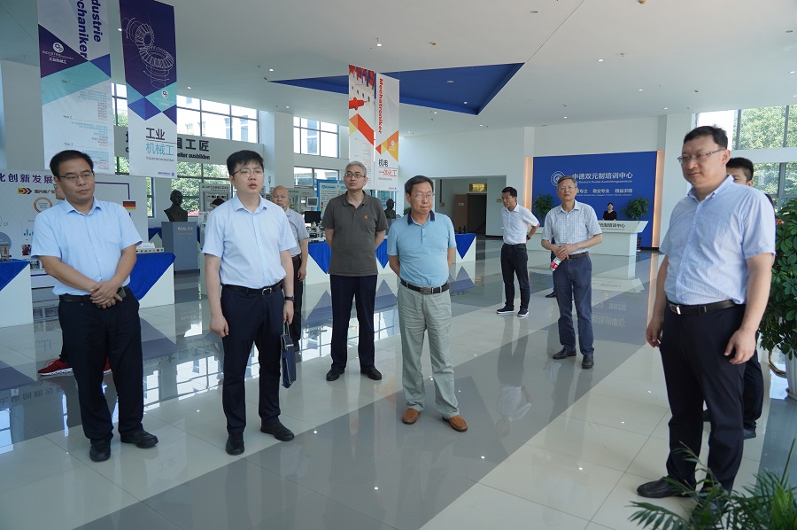 7月14日上午,陕西省教育厅、发展改革委、工信厅、财政厅、人社厅组成陕西省职业教育调研考察组一行9人参观考察我院中德培训中心。考察组此行的目的是学习借鉴江苏省发展职业教育的先进理念和工作经验。