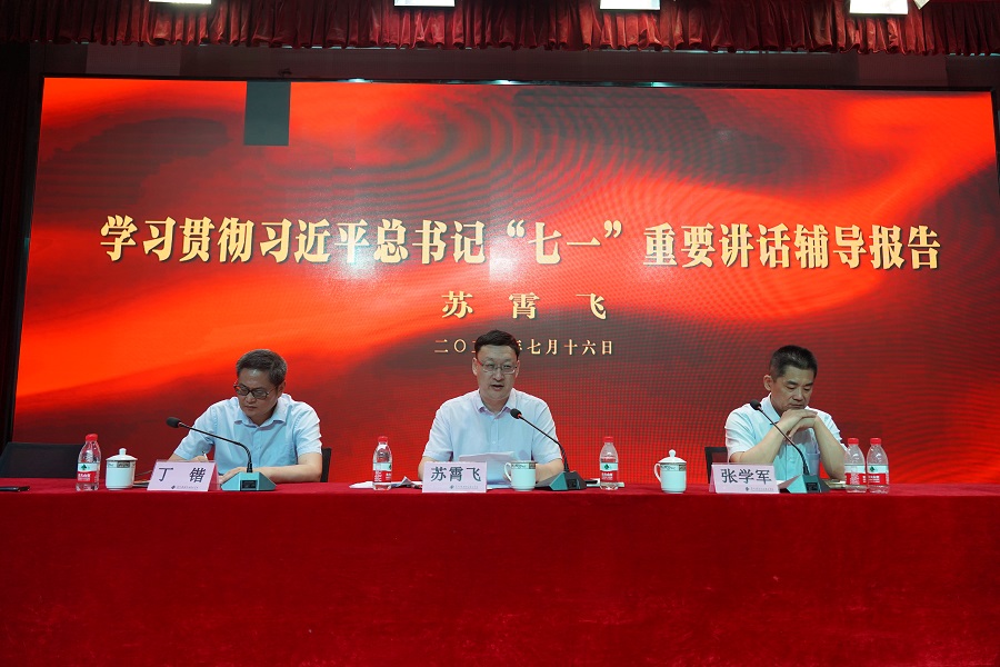 苏霄飞在报告中,带领大家重温了习近平总书记在建党百年庆祝大会上重要讲话的主要内容和核心要义。他说,总书记“七一”重要讲话,立足中国共产党百年华诞的重大时刻和“两个一百年”历史交汇的关键节点,回望光辉历史、擘画光明未来,是一篇马克思主义纲领性文献,是新时代中国共产党人不忘初心、牢记使命的政治宣言,是我们党团结带领人民以史为鉴、开创未来的行动指南。