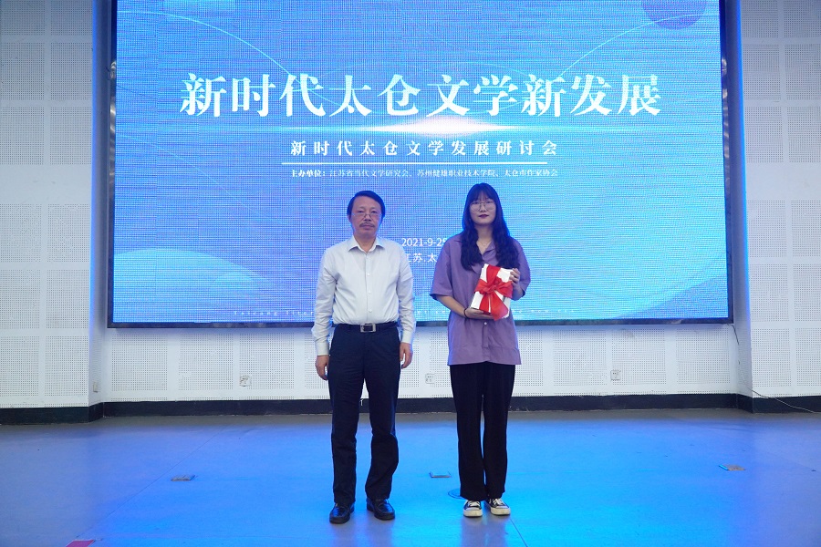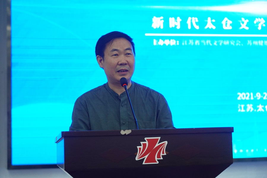 张学军在介绍了太仓人文历史和我院文化建设成果后说,我院历来重视校园文化建设,将传统文化、革命文化、企业文化、娄东文化、校本文化融入到学生德育、美育工作中,“以文化人、以文育人”,培育出一批优秀文化艺术作品。我院还依托自身优势资源,不断深化与地方的文化交流与合作,创建了太仓文创产业孵化基地,并与太仓文联、作协就推动太仓文学创作发展进行了多次合作,在座的部分专家学者曾多次莅临我院指导,有力推动了太仓文化繁荣和我院校园文化建设。这次研讨会,必将推动太仓作家们以更高的热情投入到新时代火热生活中,创作出更多优秀作品。
