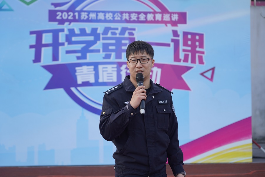 2021苏州高校公共安全教育巡讲“开学第一课”指导单位是苏州市公安局、市教育局、共青团苏州市委、市消防救援支队、人民银行苏州市中心支行等,承办单位是苏州市禁毒委办公室、市反通讯网络诈骗中心、苏州银行等,协办单位是苏州市高校禁毒志愿服务联盟等。苏州市禁毒办警官苏军、消防救援支队防火监督员刘阳尧、苏州银行江苏自贸试验区苏州片区支行理财经理游子涵、太仓市公安局反诈中心警官钱周胄、太仓开发区派出所所长王韧等分别讲解了反诈、禁毒、防火、刑事等知识。花样翻新的“校园贷”让受害学生家庭崩溃,一支正常的电子烟里隐藏着使人走堕落的毒品,喝了陌生人的一瓶矿泉水后随即失去记忆,因轻信“师兄”学妹差点“失身”,不懂得逃生知识而使自己葬身火海……发生在生活中的一个个生动的案例教育同学们时时处处紧绷安全之弦,运用法律武器保护自己。 (图/文 何寿林 审核/丁锴)