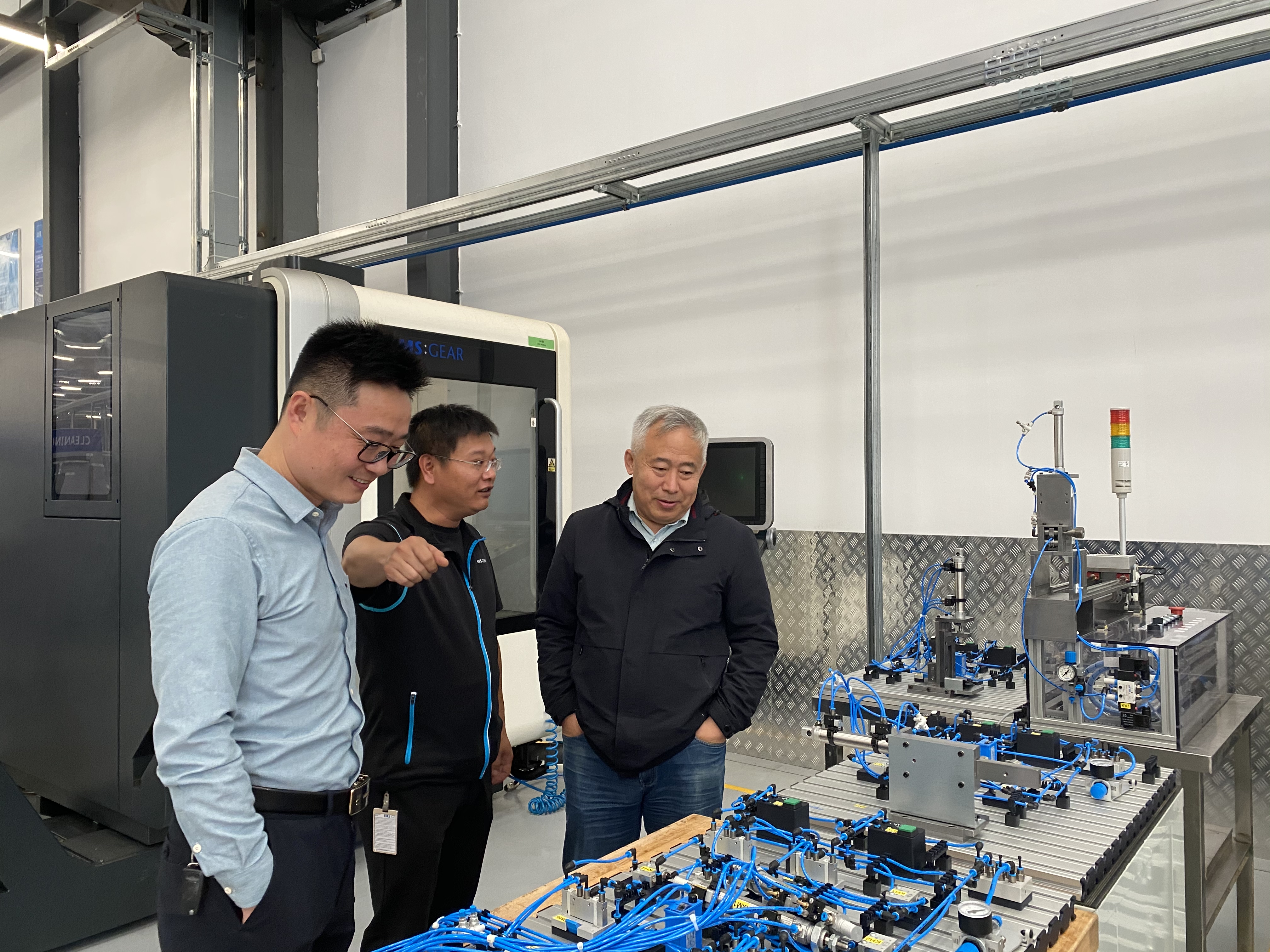 11月2日上午,学生工作处处长丁铁锋与智能制造学院院长滕宏春等一行四人前往亿迈齿轮(太仓)有限公司参观,亿迈齿轮学徒制中心马介宏接待。
