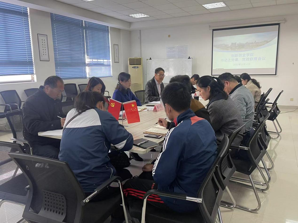 11月12日上午,创新创业学院书记上党课、党政联席会议在C1-202会议室召开。会议由学院党委委员、创新创业学院党政负责人丁锴主持,校内巡查组成员与部门全体党员参与会议。