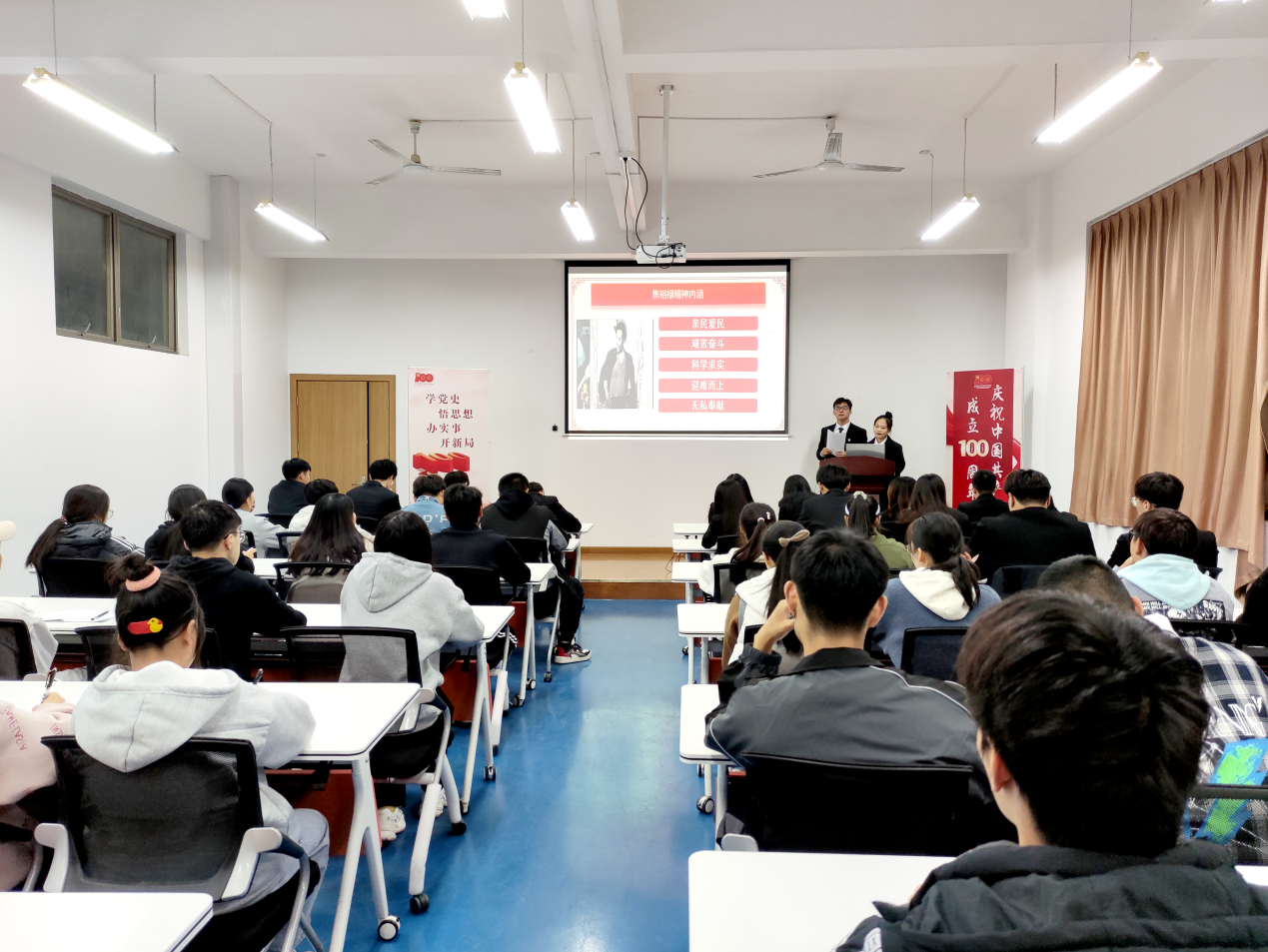 11月12日晚,人工智能学院学生党支部2021年第六期党课沙龙在D1-207举行,主题为《弘扬焦裕禄精神》。学生党支部书记周懋怡、各支部的班团干部以及入党积极分子到场参加。本期党课沙龙的主持人为大数据2012团支书徐养景、班长崔芳平。