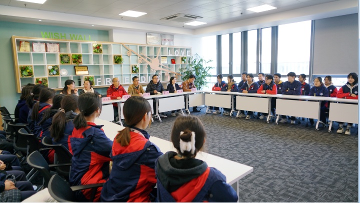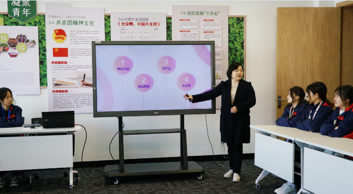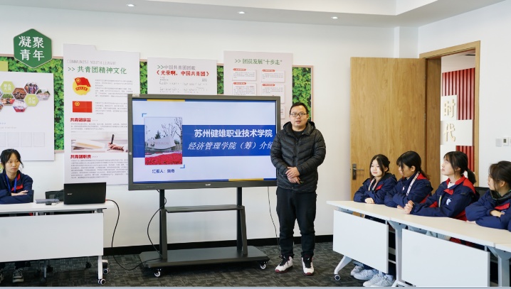 在昆山二中专,樊奇给学生们介绍了学院基本情况及特色课程;市场营销专业负责人傅兰老师介绍了专业人才培养目标及课程设置;负责该专业校企合作项目的郭献山老师介绍了专业最新校企合作成果。