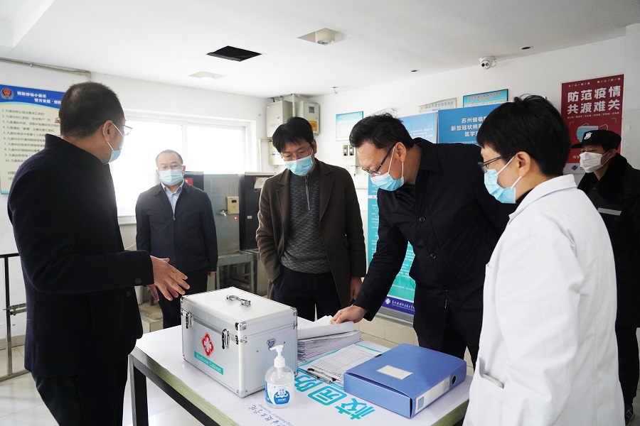 12月3日下午,苏州市教育局副局长项春雷,在太仓市教育局副局长顾新华陪同下检查我院新冠疫情防控工作。我院党委副书记、院长、学院新冠疫情防控工作领导小组组长苏霄飞汇报近阶段新冠疫情防控工作。