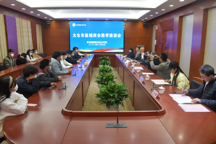 12月7日下午,太仓市盐城商会沈晓等商会领导来到我院,向周文杰等20名盐城籍学生捐资助学献爱心。学院党委委员、副院长周晓刚出席并合影留念,座谈会由学院学生工作处处长丁铁锋主持。