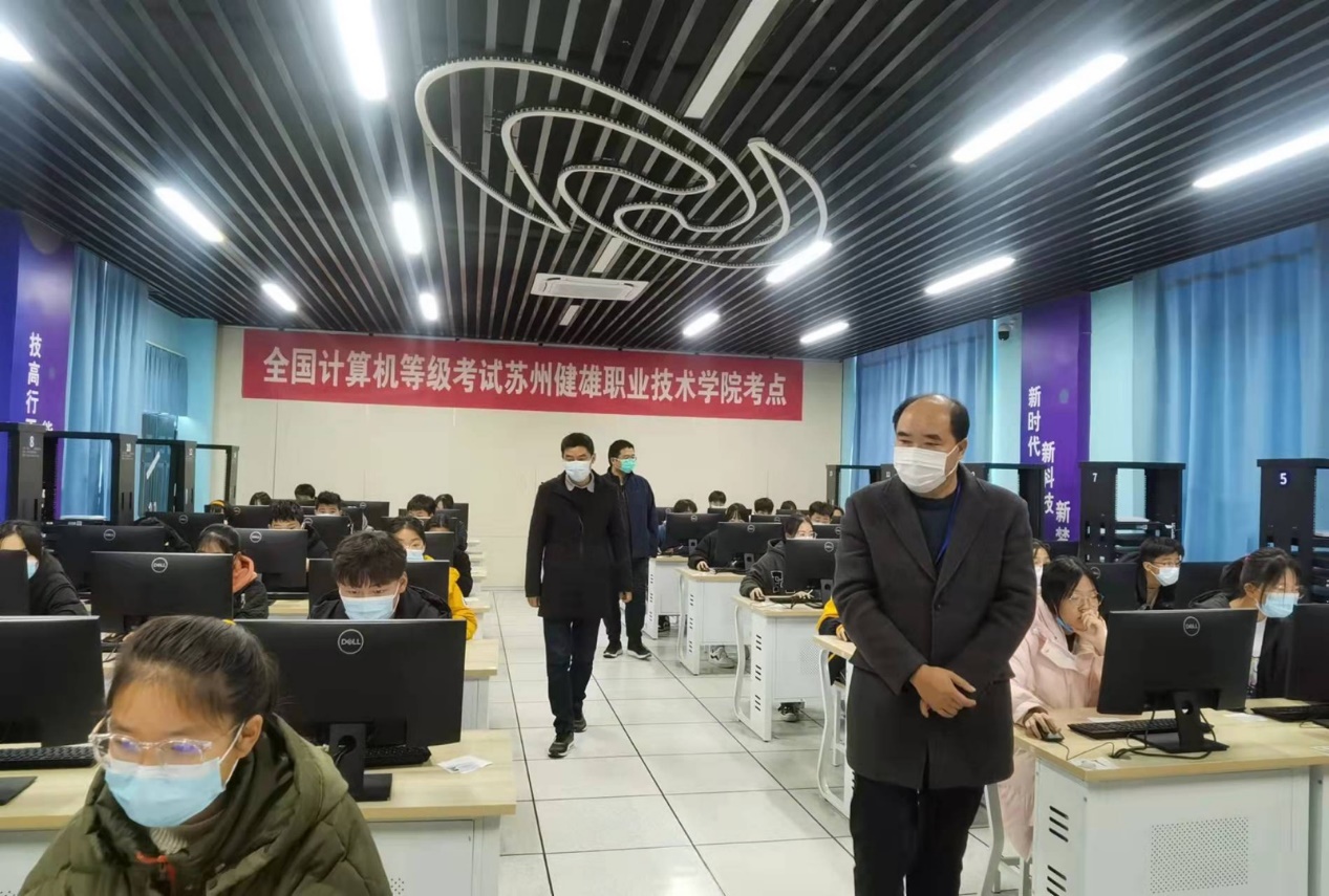 12月4-5日,第63次全国计算机等级考试在我院举行。本次考试共报考2155人,其中一级考试报名人数2068人,二级考试报名人数85人,三级考试报名人数2人,共计六个考场。考前成立了由党政领导牵头的考试工作领导小组,人工智能学院和教务处共同组织、协同管理,太仓市自考办全程巡考,太仓防疫中心全程监督,学校校办、保卫处、后勤处、信息中心等部门支持协助,确保考试顺利进行。