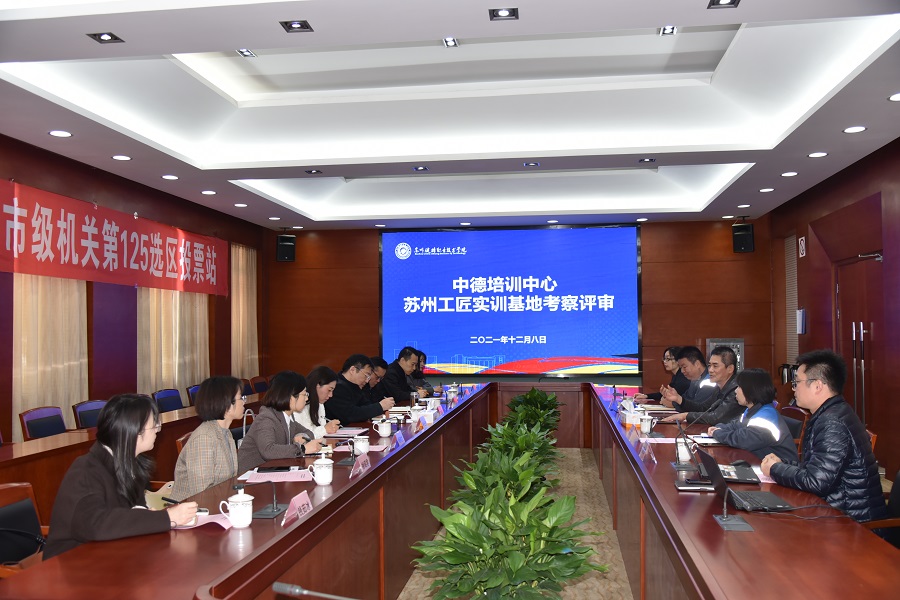 12月8日上午,苏州市总工会劳动和经济工作部副部长张晓华、太仓市总工会党组书记、副主席顾技峰等一行七人考察评审中德培训中心申报苏州工匠实训基地建设情况。副院长张学军汇报相关情况。