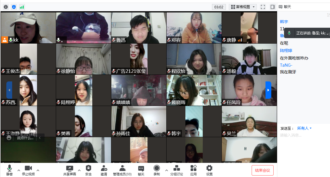 此次线上主题班会,进一步明确了各班级在疫情防控期间的重要责任,以及“停课不停学”的学习任务。班会过程中,学生积极参与互动,老师即时进行答疑,通过班会的短暂团聚,师生之间开心的相互交流,有效化解了居家隔离带来的心理压力。(图文/王钰岚 审核/王钰岚)