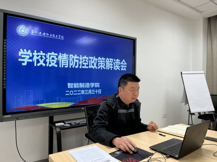 3月30日下午,智能制造学院学校疫情防控政策解读会在线上召开。学院全体教职工参加,会议由孙笪忠书记主持。
