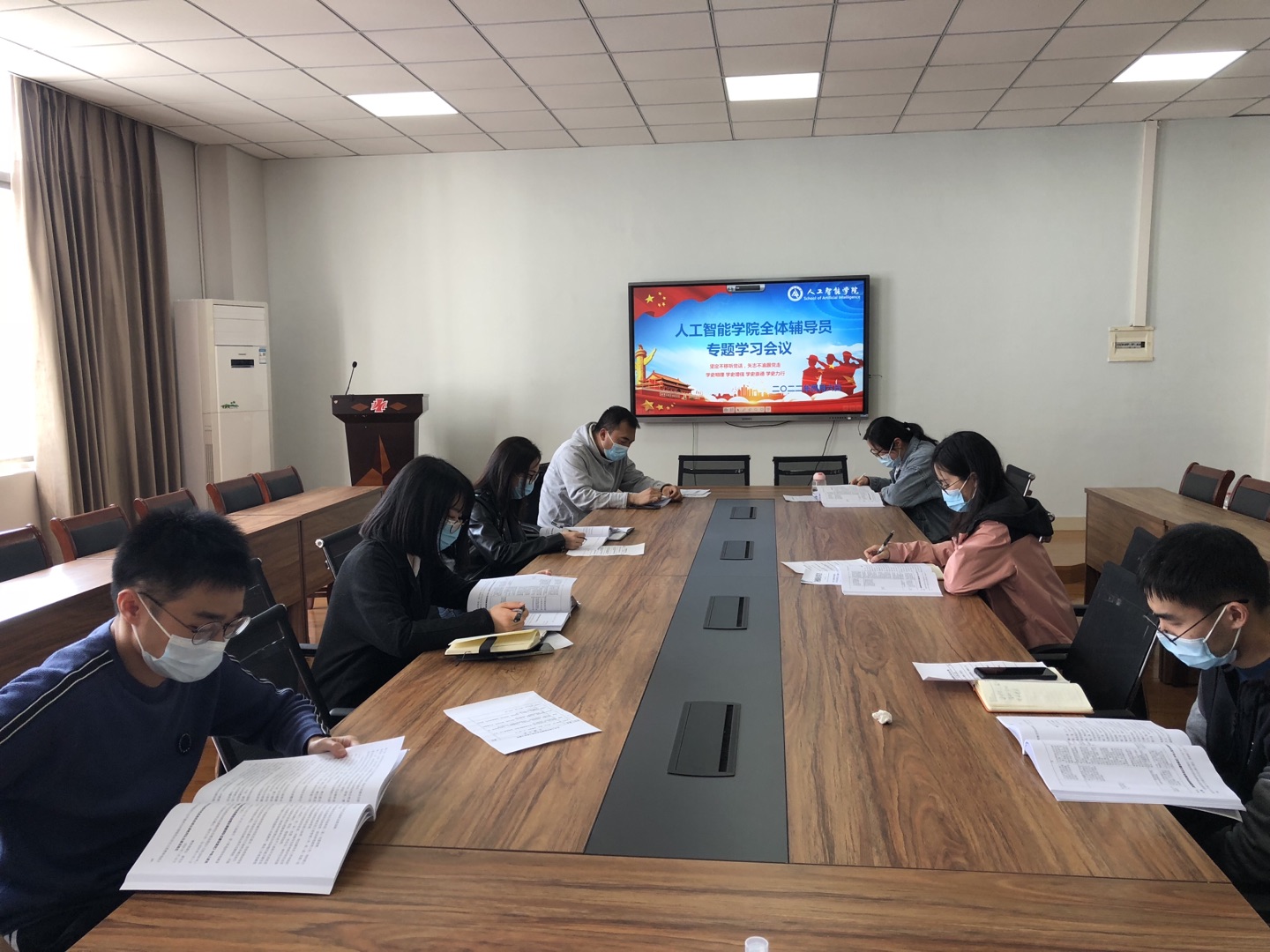4月6日下午,人工智能学院在D2-303会议室召开全体辅导员专题学习会议。会议由人工智能学院党总支副书记高飞主持,全体辅导员参加。