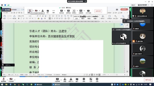 4月7日、13日,联合研究院组织三位申报2022年度姑苏创新创业领军人才计划——“高校青年创新领军人才”的博士王亮、汪建华、官立群,参加了两轮专家一对一辅导活动。两轮辅导均由太仓市科技局科技人才科组织,采取的是线上腾讯会议模式,邀请的专家来自省内著名高校及投融资机构。