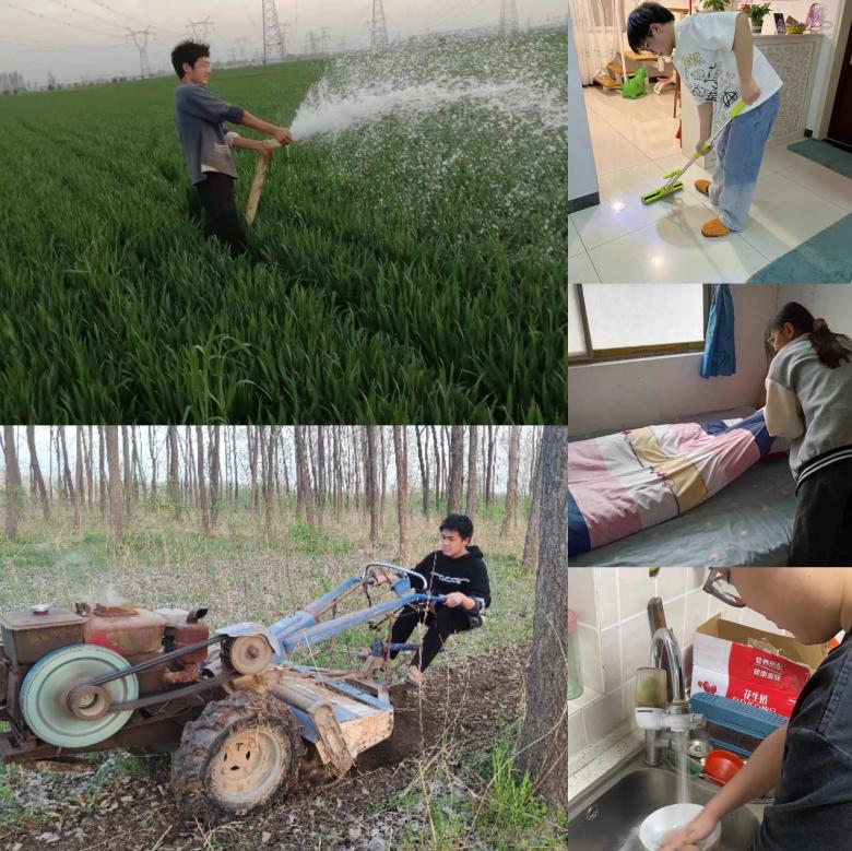 农田家务展示篇。劳动就是用一双勤劳的双手创造命运创造财富。大数据2012赵泽平、软件2013袁凡同学下农田、干农活,体验了别样的劳动过程,一天的劳作,身体的疲惫与心情的愉悦格格不入,却恰到好处。软件2011徐政、软件2101孙毅、物联网2102高瑶瑶、物联网2111陈昊文等同学帮助父母分担一些打扫卫生、刷碗、洗衣服等简单家务,虽是不起眼的小事却在减轻父母负担的同时也充实了自我。