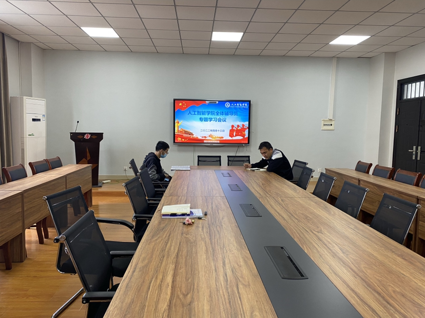 为进一步加强人工智能学院辅导员队伍建设,深入落实立德树人根本任务。4月13日和4月15日,人工智能学院采用线上线下相结合的方式召开第二次辅导员专题学习会议。会议由学院党总支副书记高飞主持,全体辅导员参加。