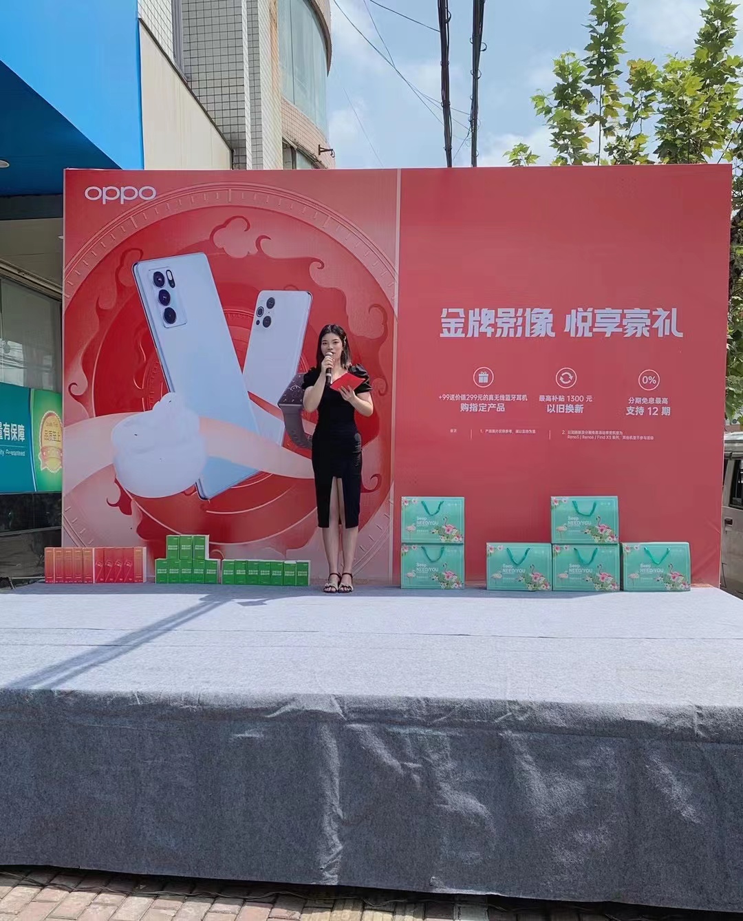 在大学里,林嘉颖是个小有名气的主持人。毕业后,她利用双休日,为当地本田、华为等汽车4S店和手机销售商主持商品促销活动,时间一长,名声在外,邀请她主持促销活动的商家越来越多,每个双休日主持活动爆满。