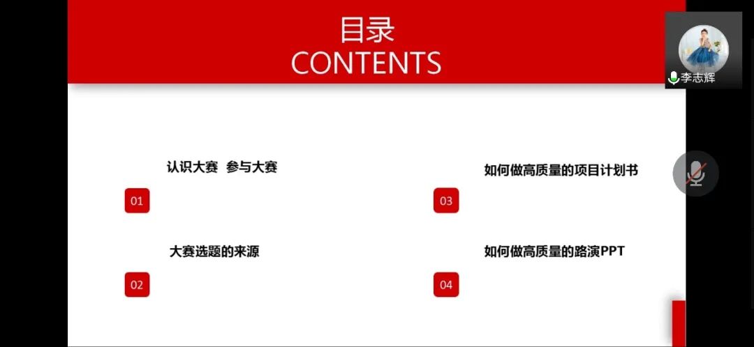 李老师主要从4个方面对大赛进行了讲解:认识大赛与参与大赛、大赛选题的来源、如何做高质量的项目计划书以及如何做高质量的路演PPT。李老师讲到,大赛可以简要概括为“1+6”,“1”指主体赛事,包括高教主赛道、“青年红色筑梦之旅”赛道、职教赛道、国际赛道和萌芽板块。“6”是6项同期活动,包括“青年红色筑梦之旅”活动、“大学生创客秀”(大学生创新创业成果展)、大赛优秀项目对接巡展、对话2049未来科技系列活动、浙商文化体验活动、联合国科教文组织创业教育国际会议。在对每个赛道和活动做了介绍后,李老师建议,作为文科专业背景的我们,可以将红旅赛道作为突破口,专注自身优势,找准目标,多下功夫,力争出彩。(图文/张丽丽 审核/周丽雅)