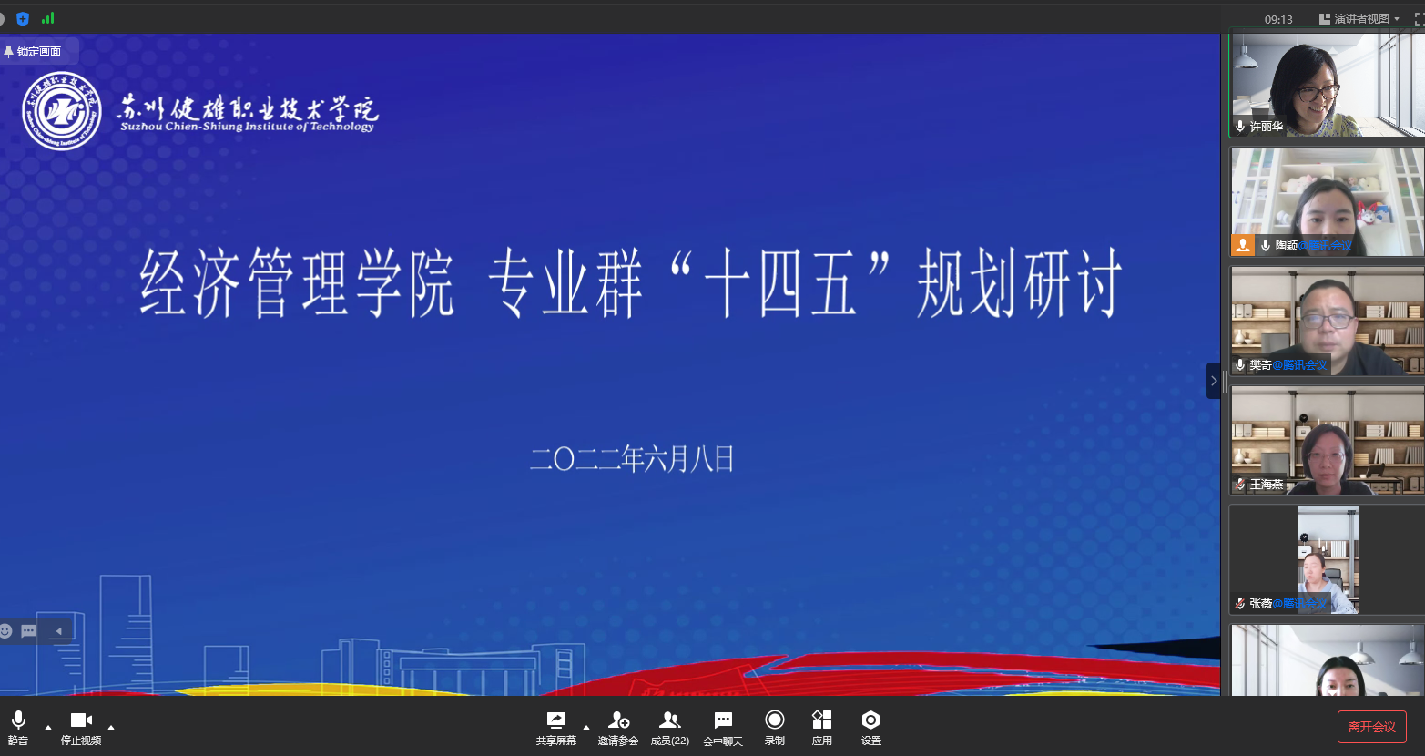 6月8日下午,经济管理学院在线召开了专业群“十四五”规划研讨会,会议由教学副院长樊奇主持,学院筹建组成员、团队主任及相关老师参加。