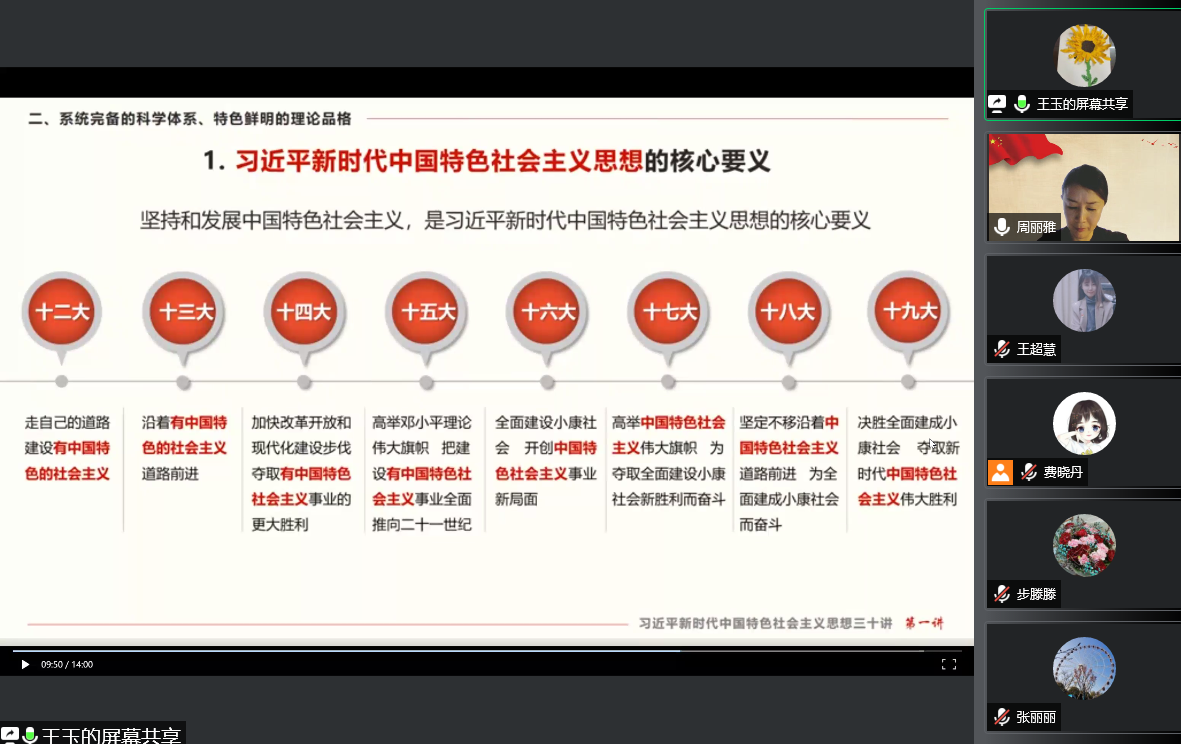 为深入学习贯彻习近平新时代中国特色社会主义思想,以实际行动迎接党的二十大胜利召开,经济管理学院党总支组织广大教师党员接力领学《习近平新时代中国特色社会主义思想三十讲》,学思践悟新思想,接续奋斗新时代。6月8日,由团总支书记王玉、教工党支部书记王懿分别带领全体党员学习了《第一讲》和《第二讲》的内容。