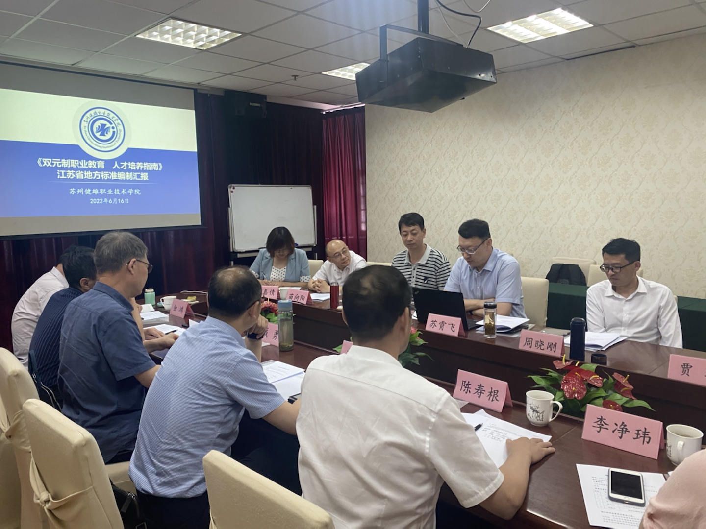 6月16日,江苏省市场监督管理局在南京组织召开地方标准审查会,对我校主持起草编制的《双元制职业教育 人才培养指南》省级地方标准进行审查。会议由江苏省市场局标准化处主任梁彪主持,特邀全国机械行业职业教育标准研究所所长戴勇教授、江苏省教育厅职教处副处长万炜、南京信息职业技术学院金鸿教授、江苏城乡建设职业学院副校长陈寿根研究员、莱茵科斯特集团张振中首席培训官5位专家组成审查组。