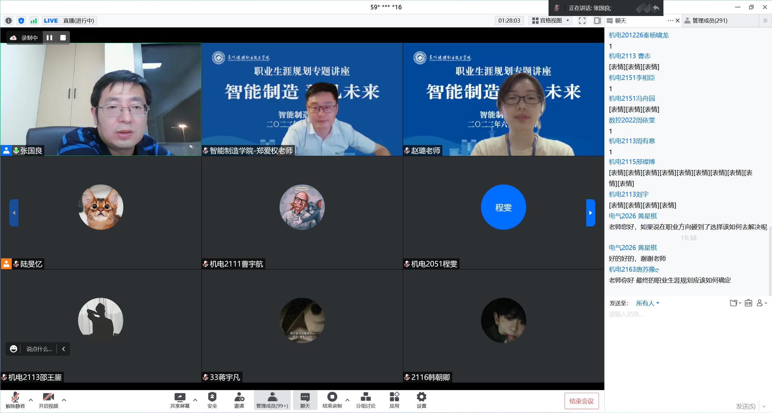 6月23日晚,“智能制造 预见未来”职业生涯规划专题讲座在云端顺利举行。本次讲座邀请到苏州市职业大学机电工程学院副院长、SCDC(高级)生涯规划师、全球BCC生涯教练张国良担任主讲。郑爱权老师主持本次讲座,2020级、2021级380多位同学参加。
