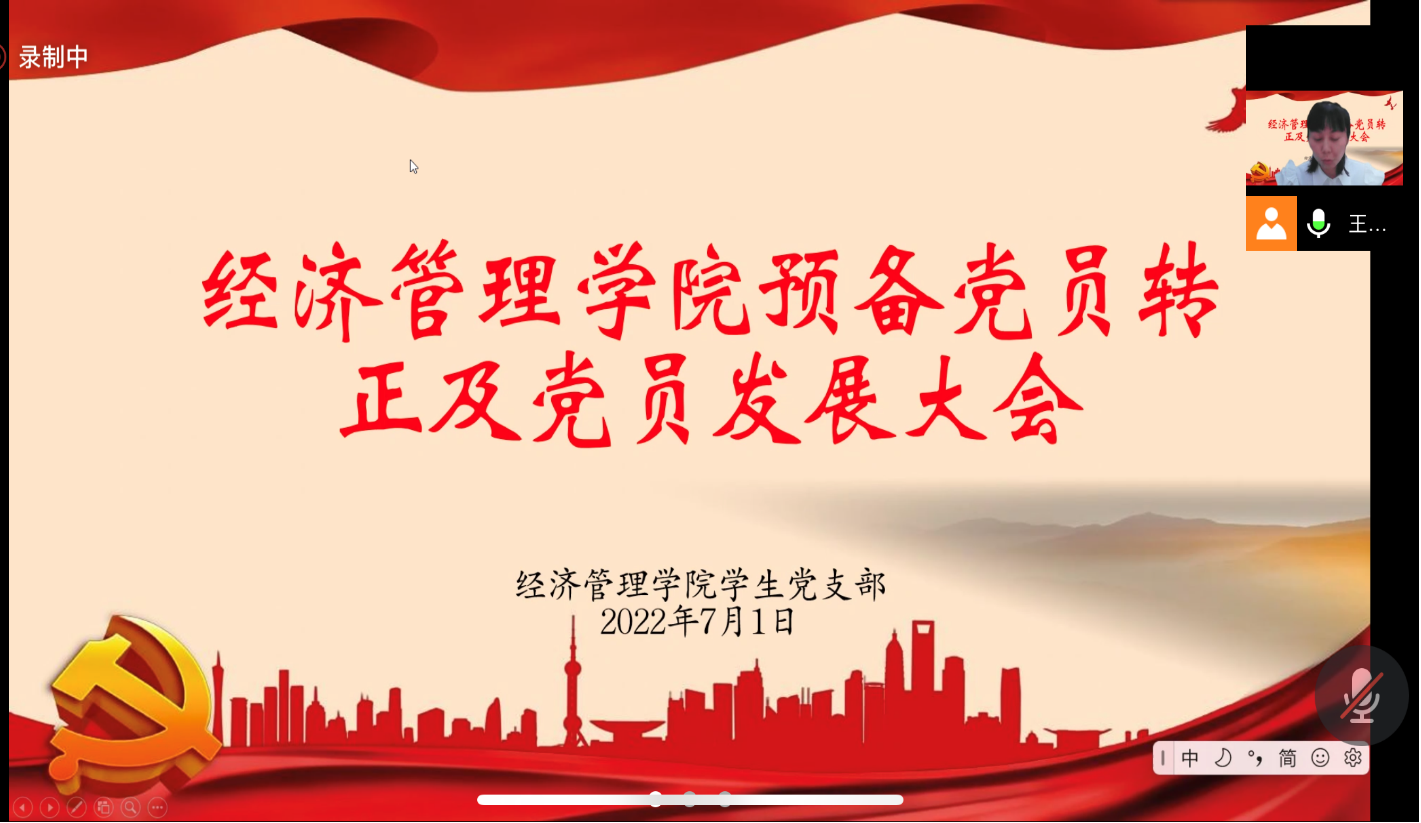 7月1日下午,经济管理学院学生党支部通过线上形式召开党员发展及预备党员转正大会,经济管理学院学生党支部全体党员师生及3名党员发展对象、3名拟转正预备党员参加会议。会议由学生党支部书记王超慧老师主持。