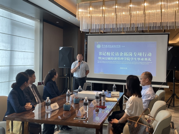 6月30日下午,苏州健雄职业技术学院副院长吴建洪与经济管理学院筹建组成员、合作教育处副处长朱慧等来到太仓铂尔曼酒店,走访看望正在该酒店实习的经济管理学院2022届毕业生,并且为他们颁发毕业证书。