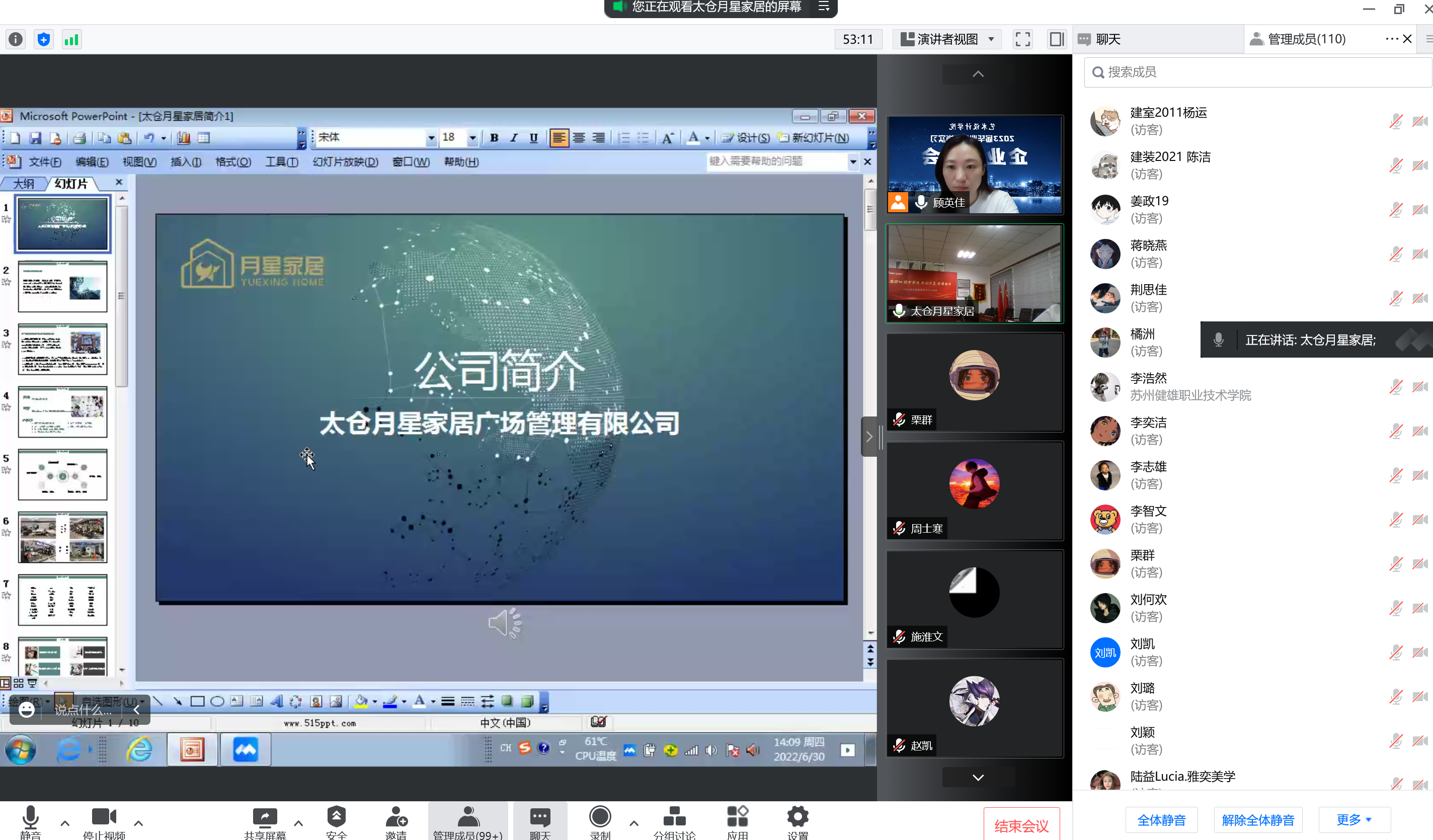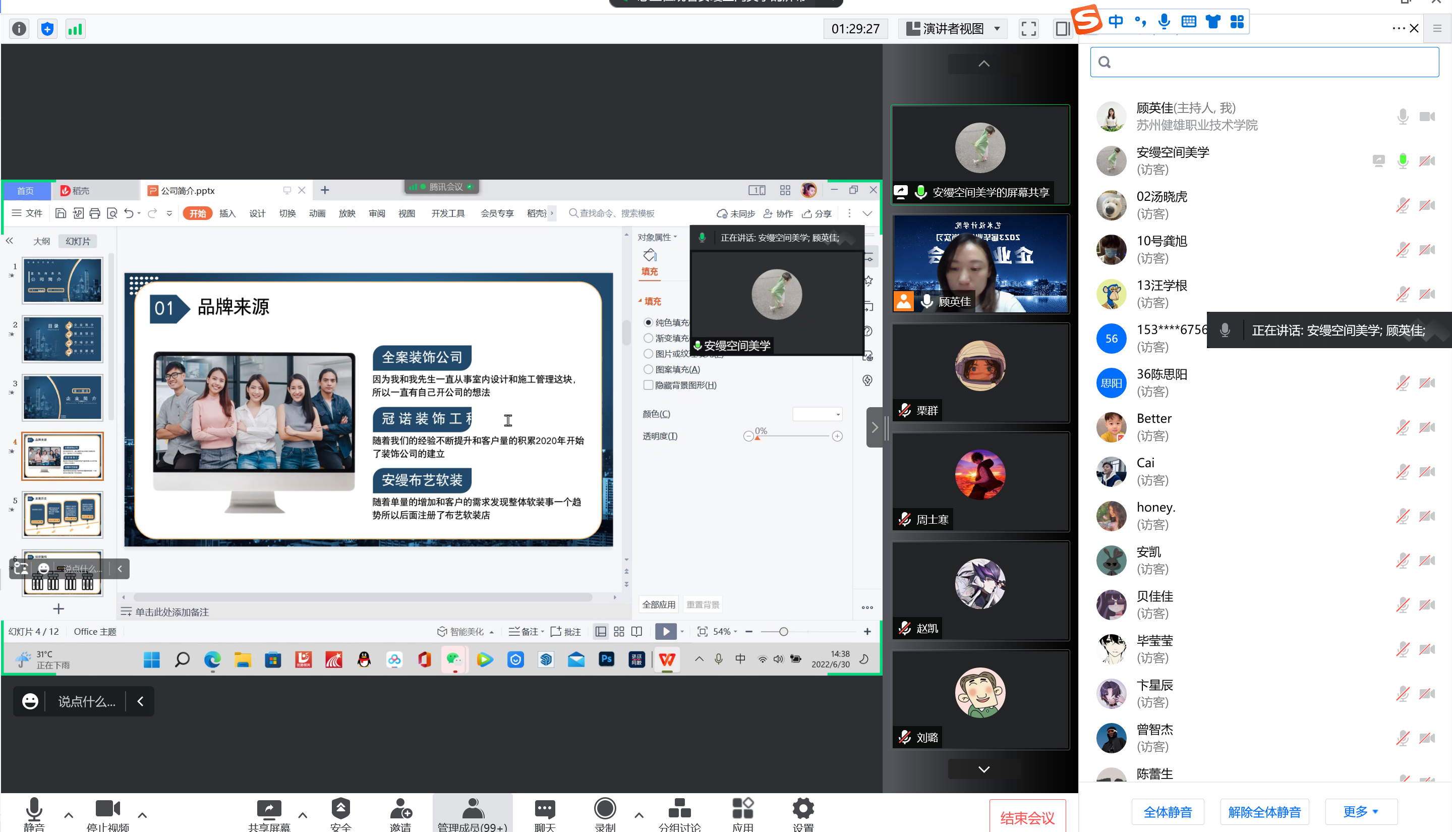 6月30日,艺术设计学院在腾讯会议平台,召开了2023届毕业生定岗实习第二场校园招聘宣讲会。本次宣讲会邀请了6家公司代表进行宣讲,环境艺术设计、建筑室内室内和建筑装饰工程技术专业的120余名学生、就业辅导员和相关实习指导老师参加了宣讲会。