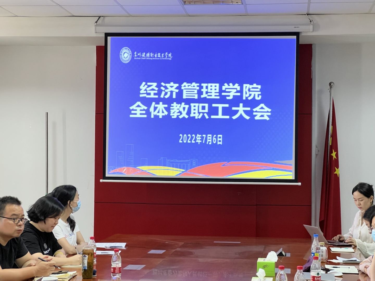 7月6日下午,经济管理学院在学院会议室召开全体教职工大会。大会主要进行两项议程:一是“喜迎二十大建功新时代——身边的榜样力量分享会”,二是总结春学期工作成绩,规划下阶段重点工作。