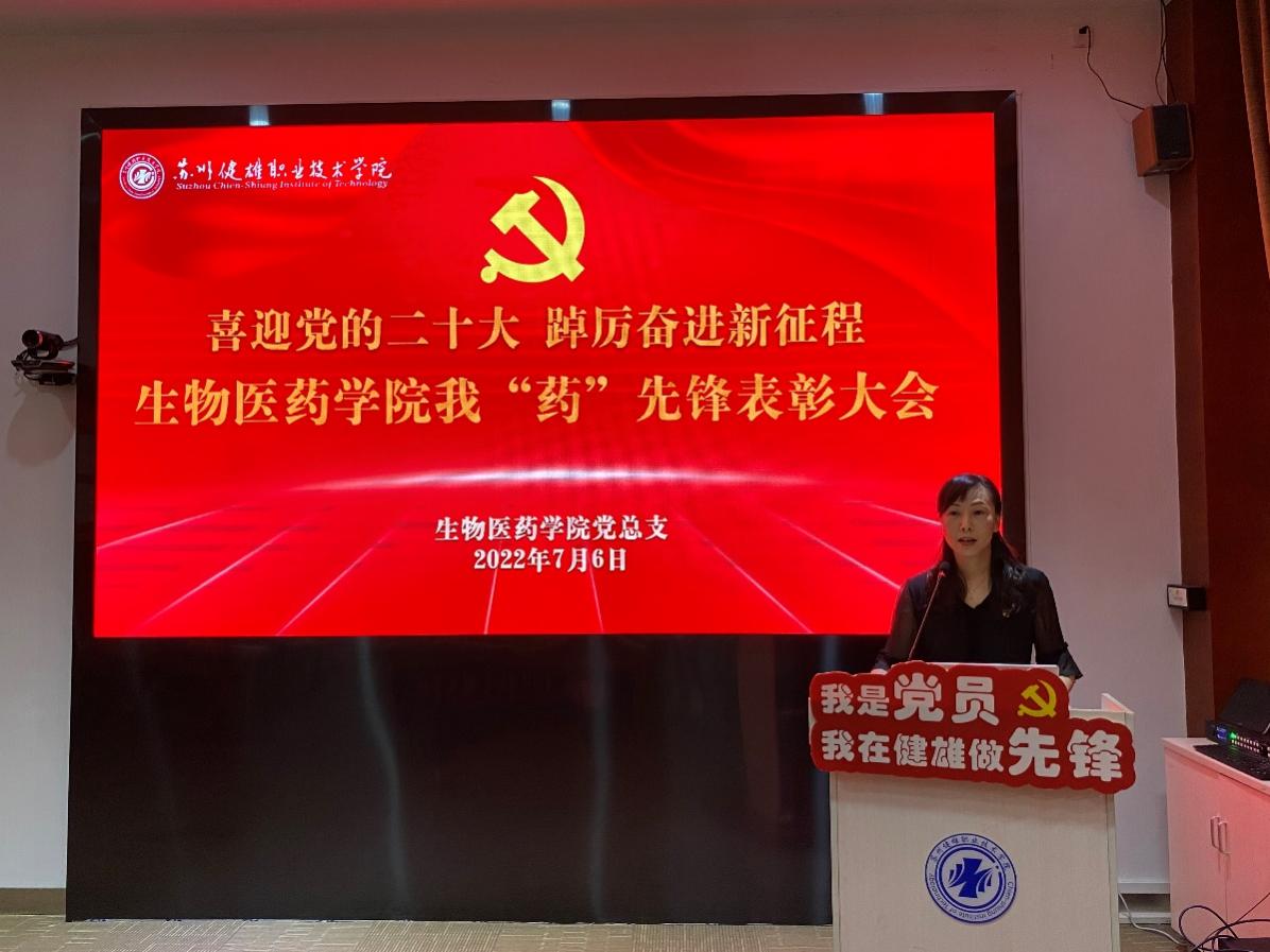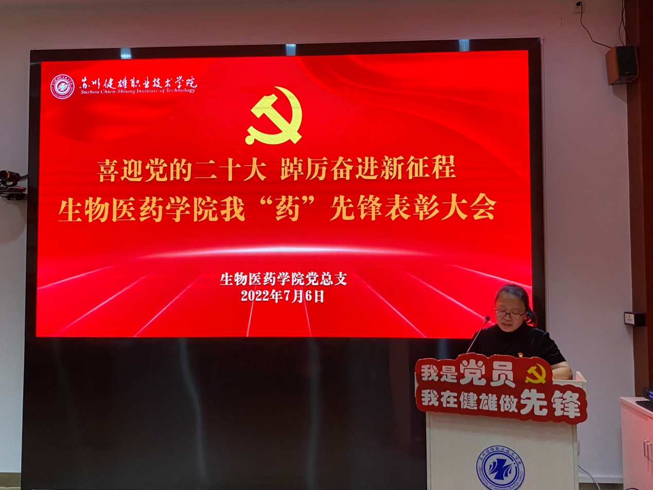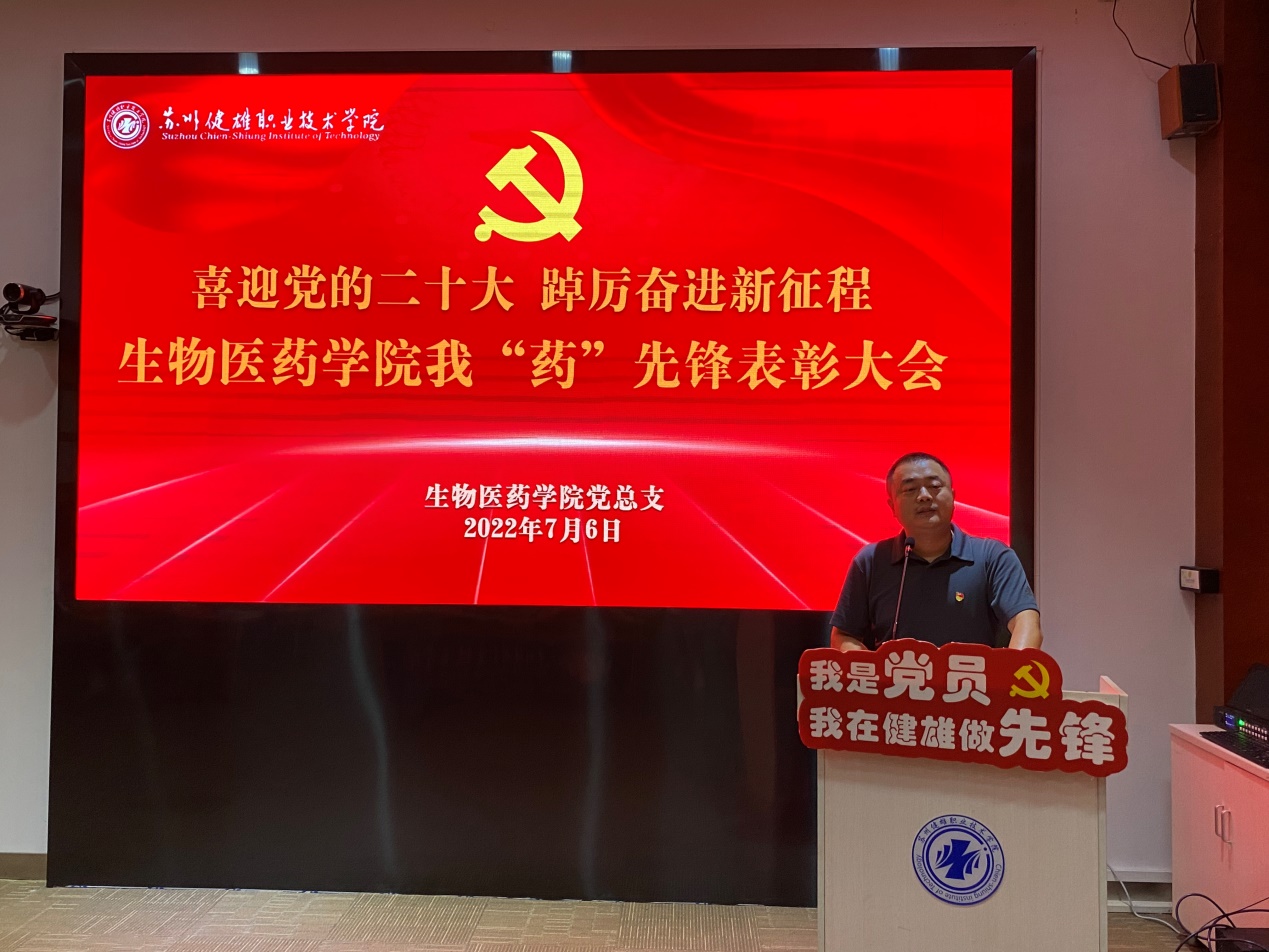 7月6日下午,生物医药学院党总支在学校吴园第三会议室召开喜迎党的二十大 踔厉奋进新征程——生物医药学院我“药”先锋表彰大会。校党委工作部谢小莉部长、生物医药学院筹建组全体成员携全体教职工参加此次活动,表彰大会由生物医药学院党总支副书记贾红圣主持。
