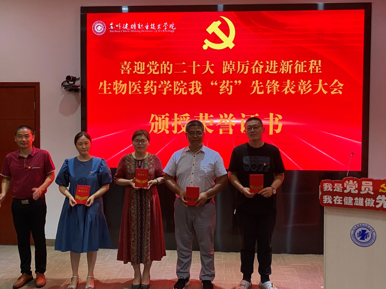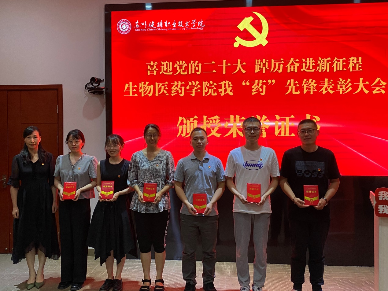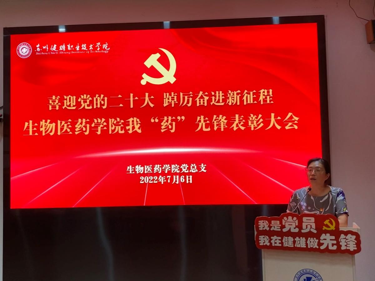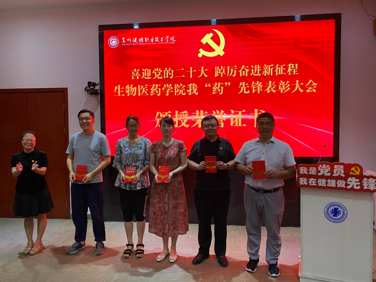 7月6日下午,生物医药学院党总支在学校吴园第三会议室召开喜迎党的二十大 踔厉奋进新征程——生物医药学院我“药”先锋表彰大会。校党委工作部谢小莉部长、生物医药学院筹建组全体成员携全体教职工参加此次活动,表彰大会由生物医药学院党总支副书记贾红圣主持。