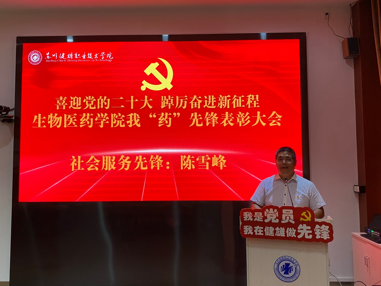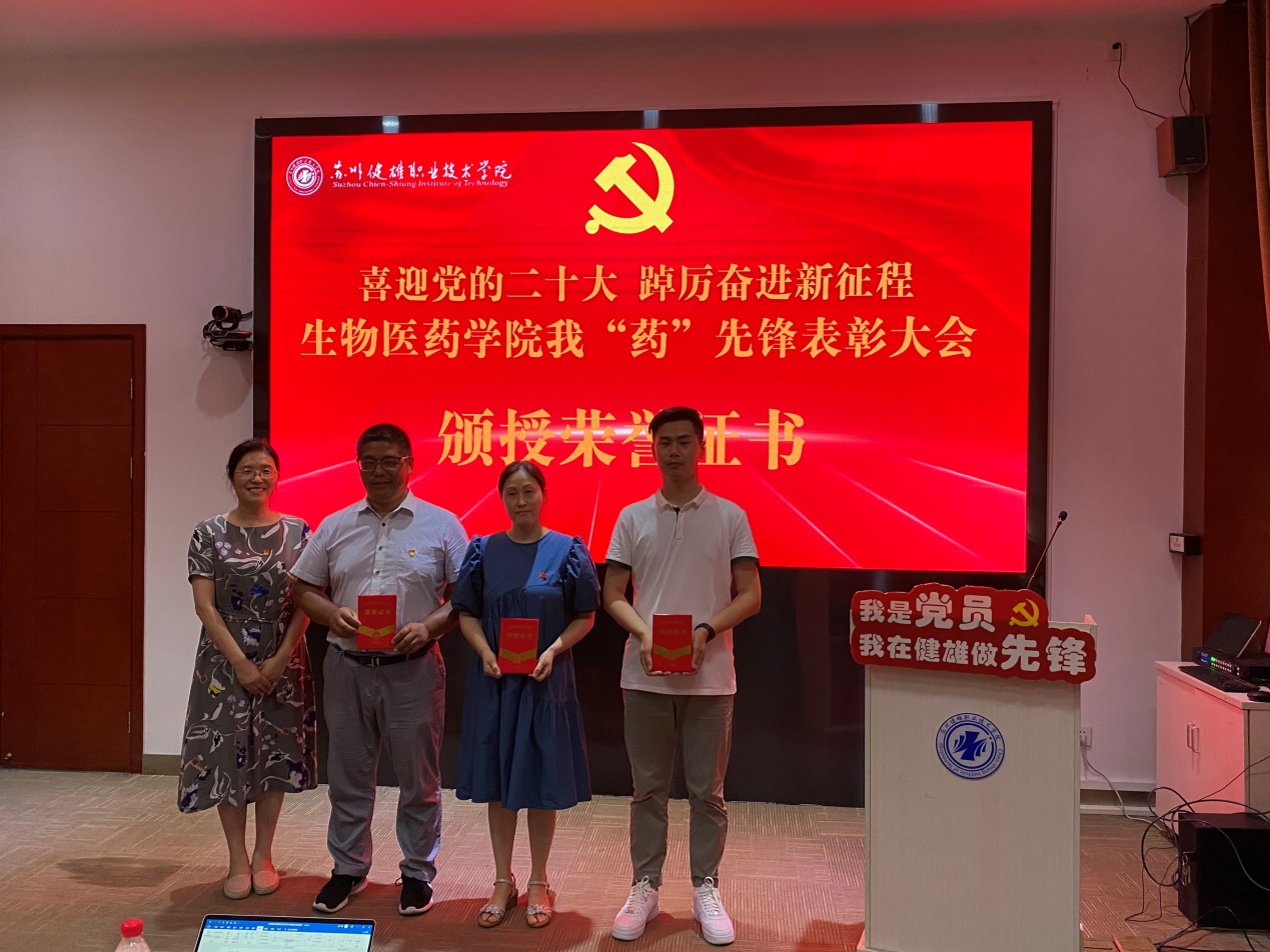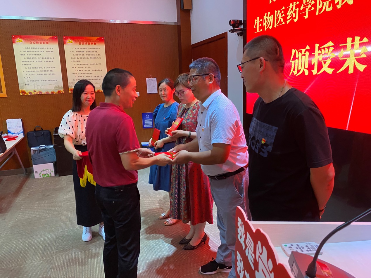 首先,生物医药学院副院长王杨宣读《生物医药学院我“药”先锋表彰决定》,对我“药”先锋融合式党建创建过程中,在抗疫防疫一线、招生宣传战线、人才培养前线、科学研究阵线、社会服务热线、优秀云班级管理火线等领域表现突出的个人予以表彰。