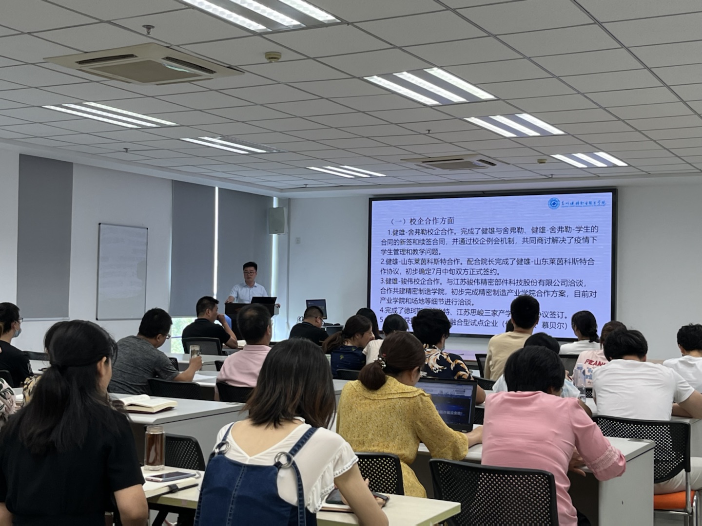 随后,各条线管理的负责人依次就本学期已完成工作进行了汇报和总结,盘点了学院在教学保障、校企合作、学生工作、教学管理、教学场室安全等方面的工作情况,同时对暑期及秋学期的工作进行了安排和布置。