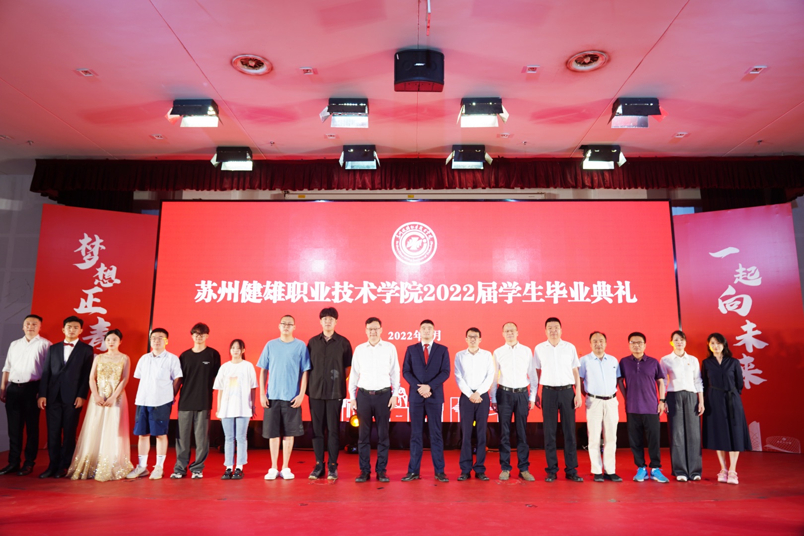 苏霄飞在毕业典礼上讲话。在临别之际,他以“三种形态”与同学们分享人生的感悟与期许:一是画好生命的“长方形”,继续在逆境中汲取生命的力量,延展生命的广度和深度,做一个体魄健壮、心灵通透的人;二是筑牢事业的“三角形”, 希望同学们从健雄学院这条“底线”出发,不忘“能工巧匠”“大国工匠”的初心,秉承劳模精神、劳动精神、工匠精神,传承吴健雄的科学精神和家国情怀,脚踏实地、勤奋严谨、厚积薄发;三是巧绘生活的“双螺旋”, 在未来的生活中正确、客观判断生活中的酸、甜、苦、辣,觅得人生知己,组成DNA的最佳“双螺旋”,互相扶持、互相包容,共同走好幸福人生路。