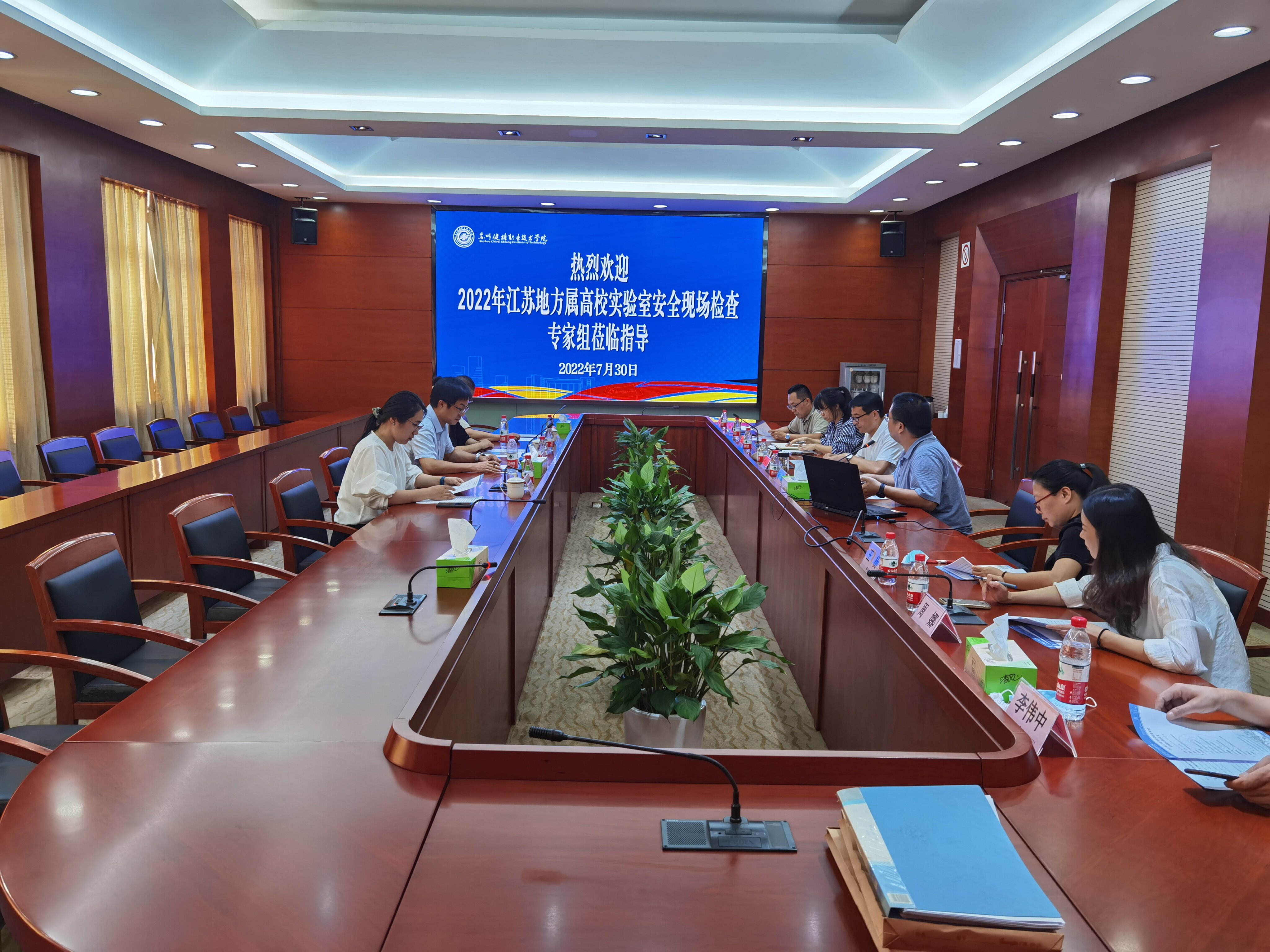 7月30日下午,江苏省高校实验室安全现场检查组组长江南大学实验室与设备管理处处长刘仁、苏州大学苏州医学院实验室管理办公室主任蒋芸、江南大学实验室与设备管理处科长钱婷婷、江南大学实验室安全督导周耀东一行4人到我校开展2022年江苏省高校实验室安全检查工作。副校长周晓刚、教务处、保卫处、生物医药学院等单位相关同志参加了此次活动。教务处副处长钟鸣主持现场检查汇报会。