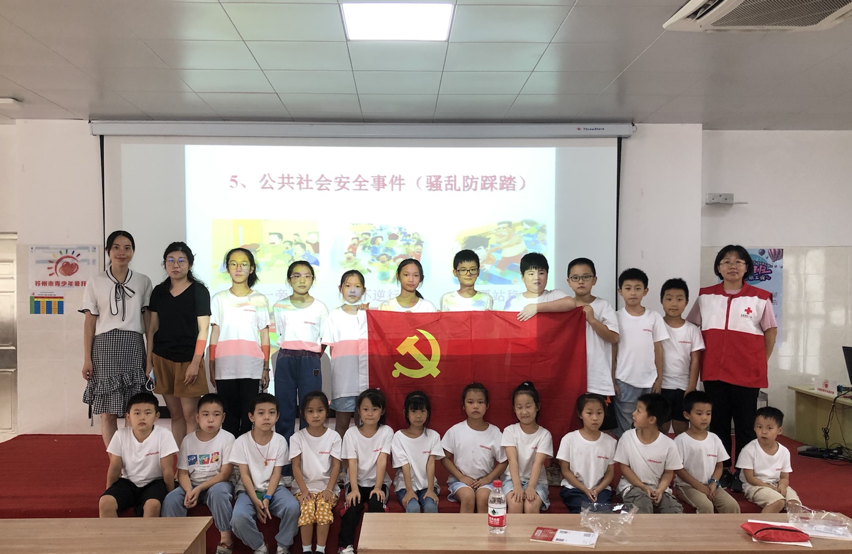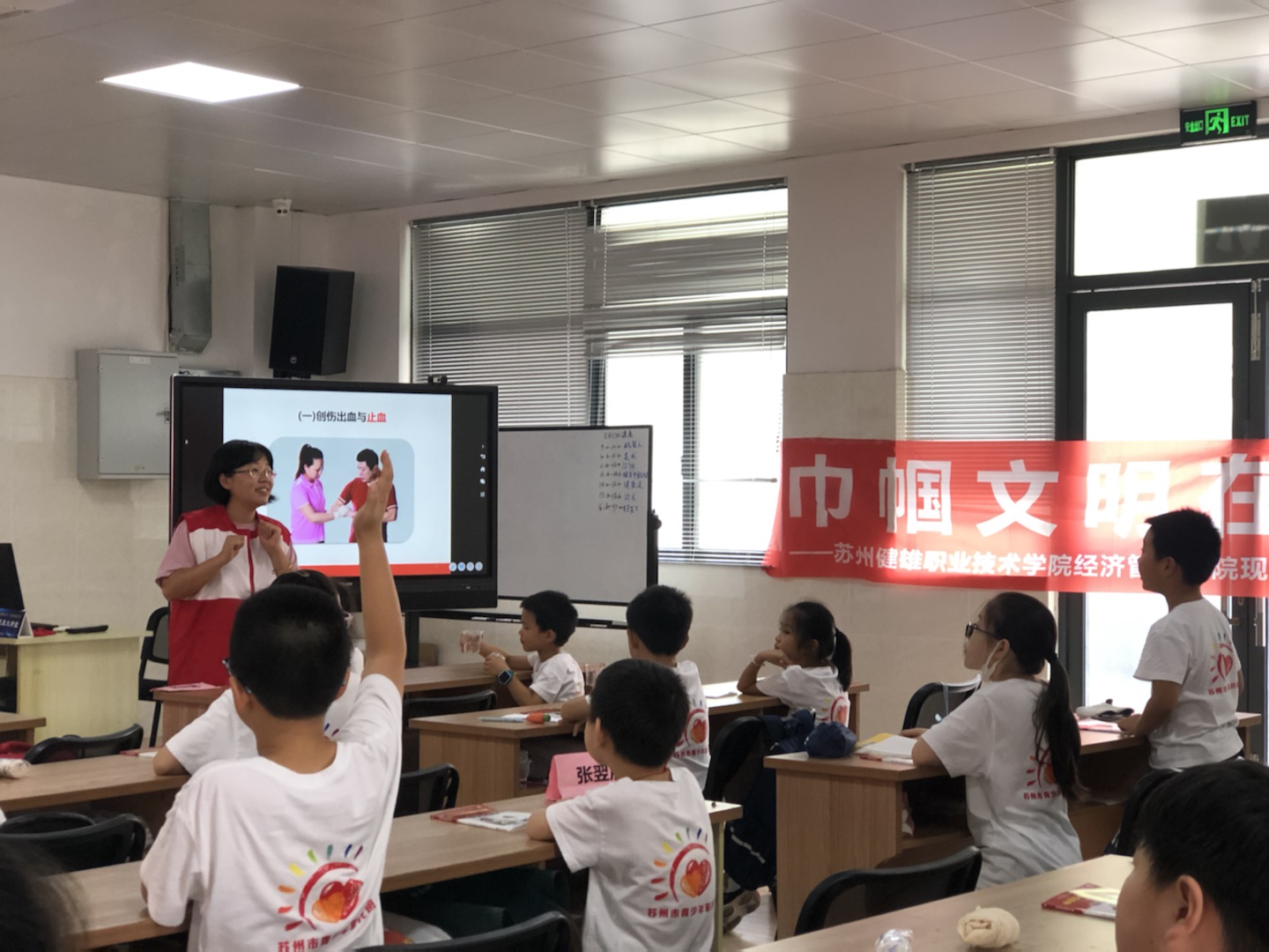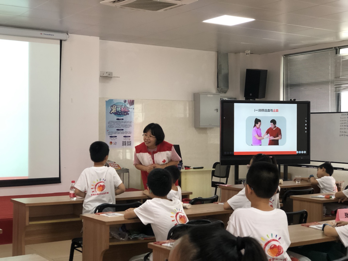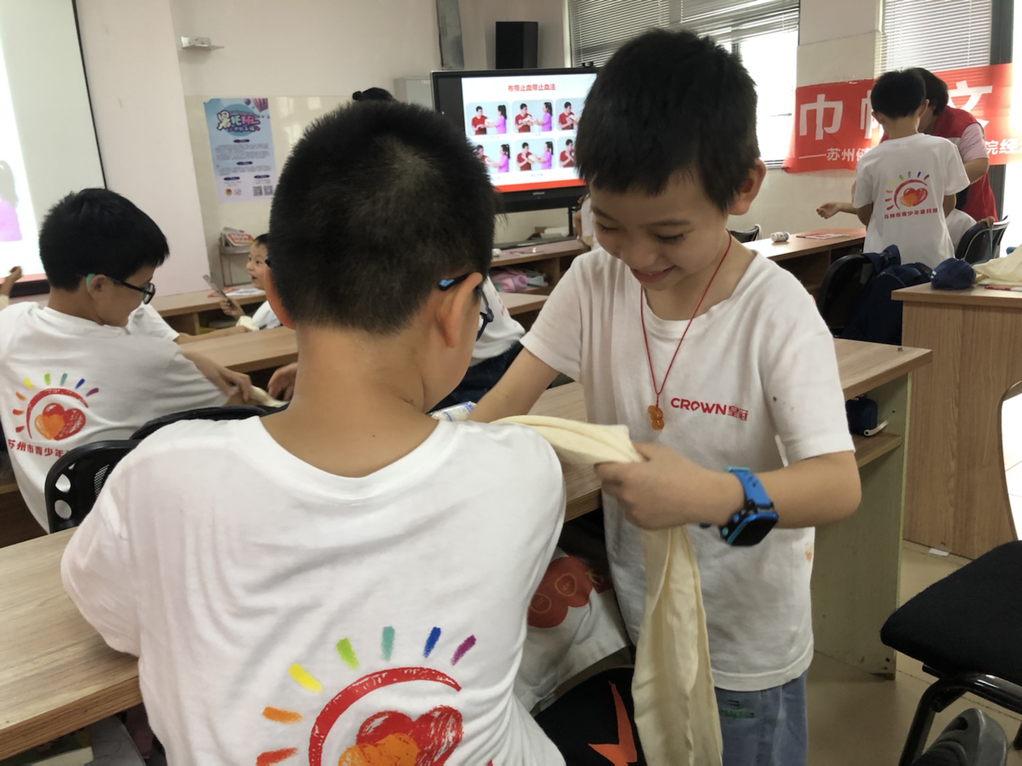 8月17日,经济管理学院党总支组织师生顶着炎炎烈日,化身急救培训员,来到双凤镇江苏皇冠新材料有限公司暑托班,为暑托班学生和志愿管理服务人员普及应急救护知识。培训现场,费晓丹老师、周晓娟老师等向他们生动地讲解了创伤救护及常见意外的处理,为他们送上贴心的夏日“安全大礼包”。