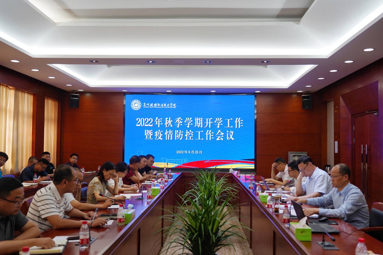 8月25日下午,我院召开2022年秋学期开学工作暨疫情防控工作会议,党委副书记、院长苏霄飞,党委委员、副院长周晓刚、吴建洪,党委委员丁锴以及各部门、各二级学院负责人参加会议。