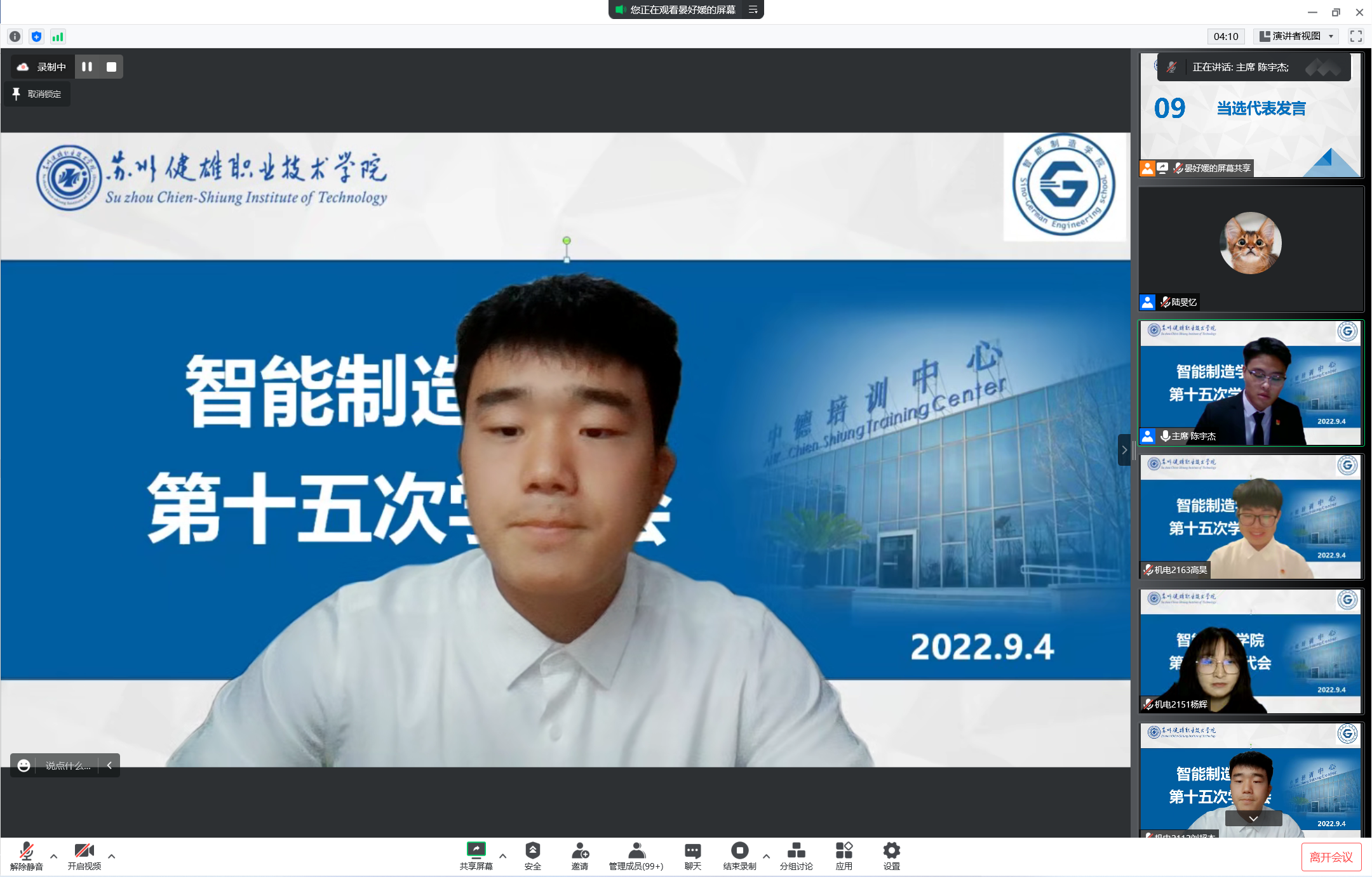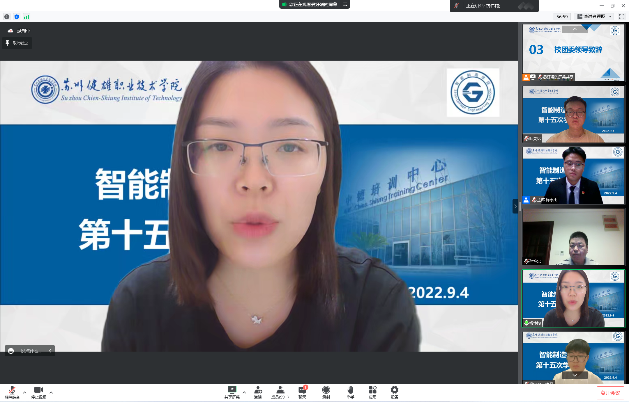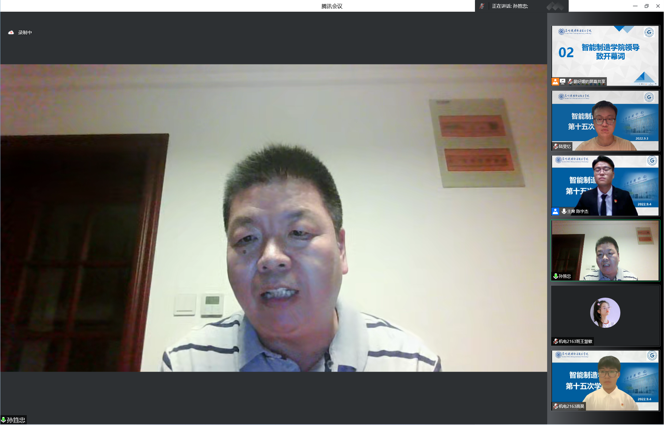 9月4日晚,智能制造学院第十五次团代会暨学代会在云端举行。参加本次大会的有校团委副书记钱伟钧、智能制造学院党总支书记孙笪忠、智能制造学院团总支书记赵璐、相关辅导员老师、学生会全体成员及学生代表。本次大会由学生会主席陈宇杰主持。