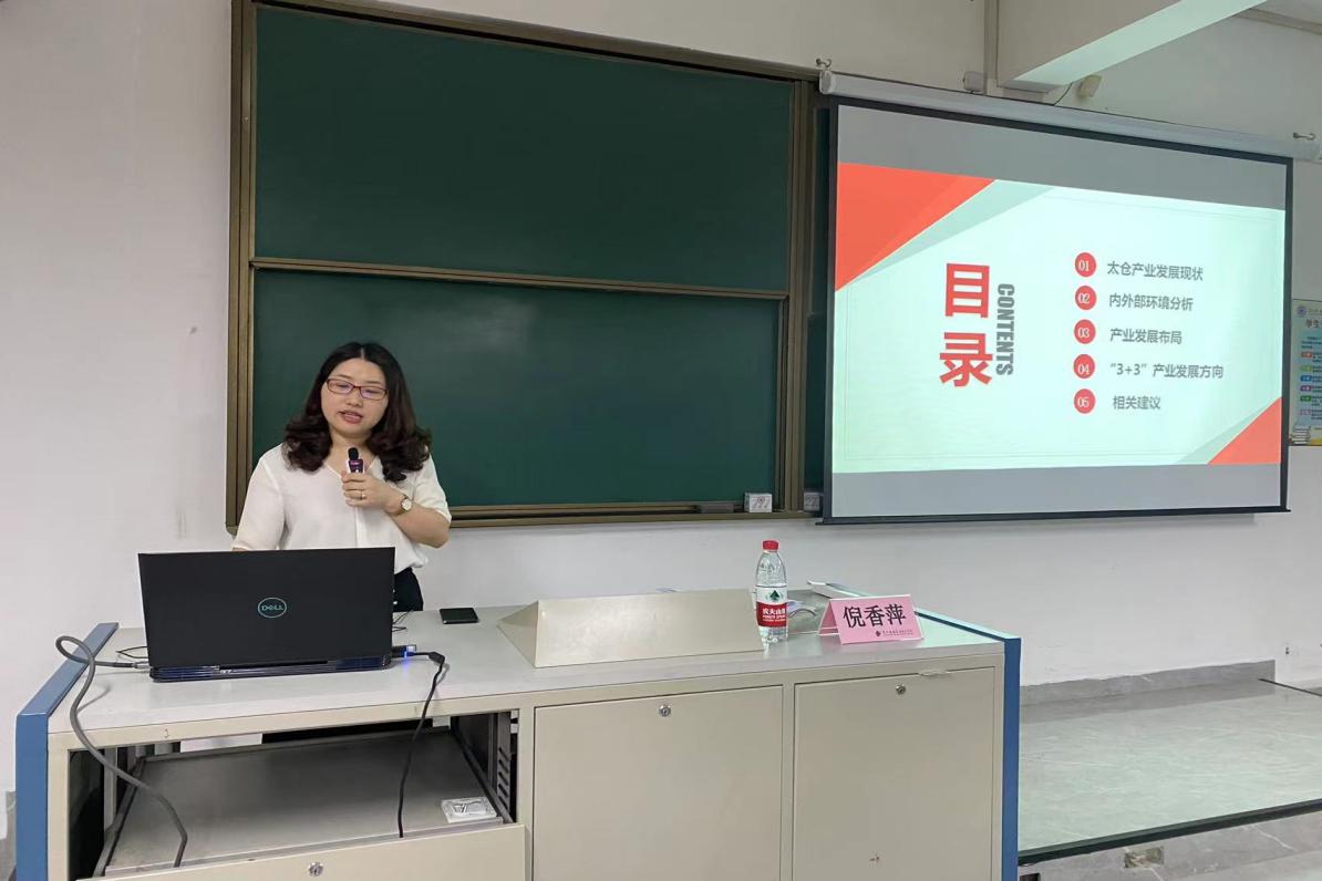倪主任作了题为《培育产业创新集群 赋能经济高质量发展》的讲座,她从太仓产业发展现状、内外部环境分析、太仓产业布局、“3+3”产业发展方向等方面进行了详细阐述,并对我校教师在专业群布局及建设方面提出了建设性意见。为全体与会教师带来了一场紧贴地方经济、产业发展的报告盛宴。会后,教师积极参与互动,与倪主任充分交流。