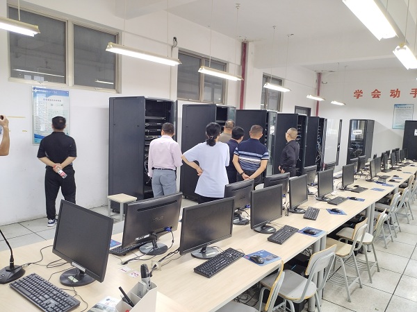 9月15日下午,江苏财会职业学院信息工程学院来我院就专业群建设开展交流。本次来访由张震院长、郑习武书记带队,携信息安全、软件等5个专业团队主任一行共7人到达我校,研讨会在D2-303会议室举行。人工智能学院筹建组组长郑广成教授对兄弟院校的造访表示了热烈的欢迎,详细地向对方介绍了我院的专业群设置、建设方案以及发展定位等详细情况,分享了我院在技能比赛、教学改革等多个方面的心得体会。双方就行业的发展方向、产业的动态、专业群的完善等多个话题进行了研讨,两校的团队主任也就实验室建设、课程体系架构等进行了充分的交流。随后邀请对方参观了我院的实训场室。