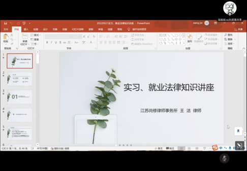 讲座中王律师分别从劳动合同建立之前、劳动合同履行过程中、劳动合同解除以及维权方式四个方面介绍学生在实习就业过程中可能遇到的问题及解决方法。同学们在线积极向王律师咨询自己在实习就业过程中遇到的一些问题。大家纷纷表示,通过今天的讲座,学习到了相关法律知识,明白了知法守法懂法才能更好的用法,维护自己的合法权益。法律在社会无处不在,希望健雄学子知法、懂法、用法;保护好自己的同时又能够遵守法律的准则,在实习就业过程中一帆风顺!(文/步滕滕 审核/傅兰)