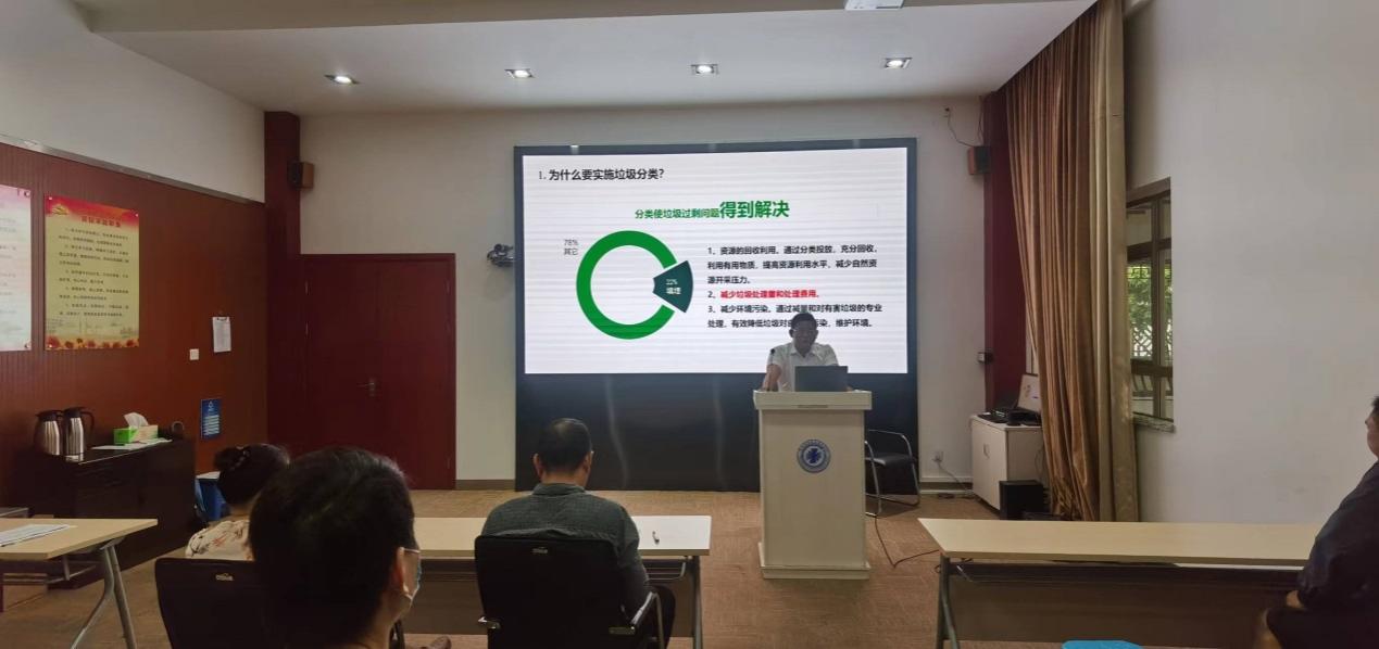本次培训邀请了苏州伯德环境发展有限公司总经理周海波为大家授课。他首先介绍垃圾分类工作现状和推进情况,对生活垃圾四分类(有害垃圾、厨余垃圾、其他垃圾、可回收物)做法、去向流程、处理方式方面进行了重点讲解。