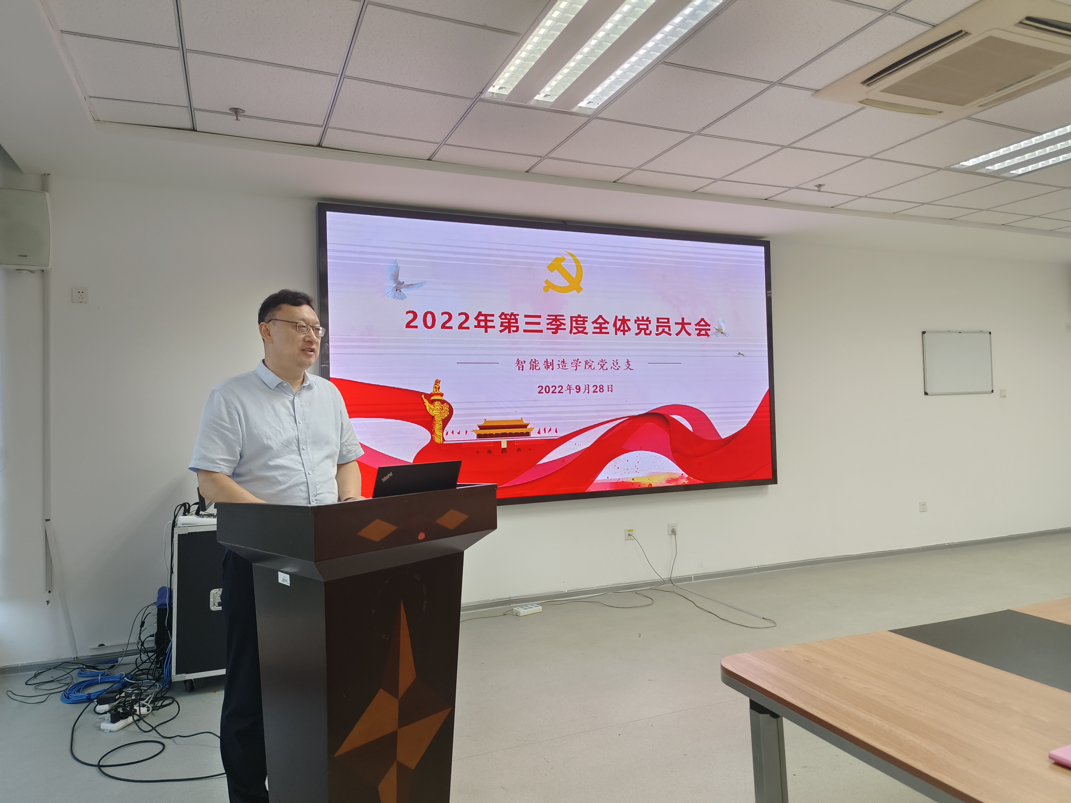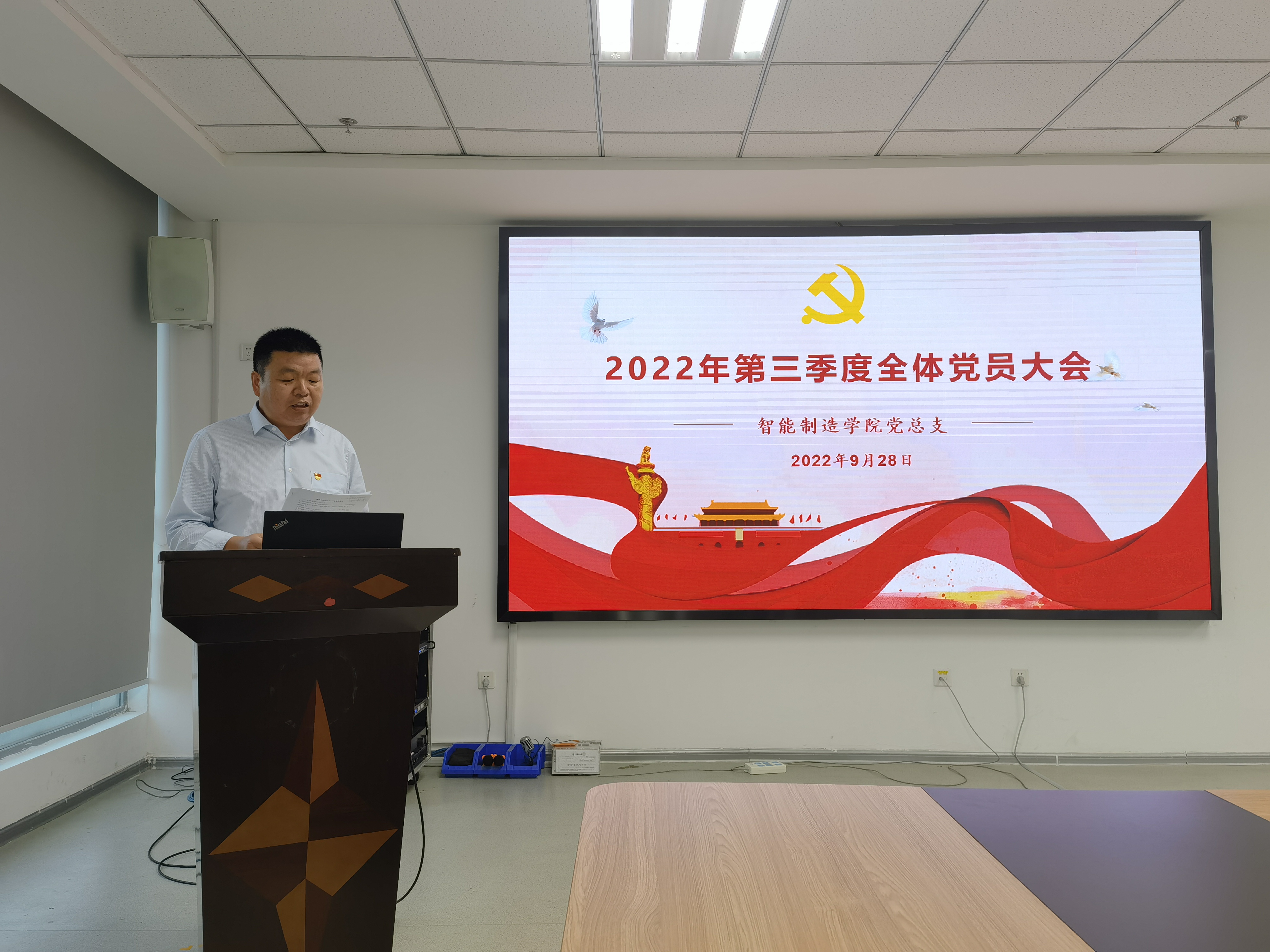 9月28日下午,智能制造学院党总支2022年第三季度全体党员大会在二期A1-402召开,会议由智能制造学院党总支书记孙笪忠主持,学院党委书记苏霄飞作为党总支新成员参会并讲话。