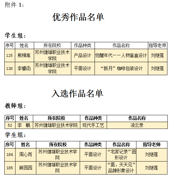 9月21日,江苏省教育厅公布2022年“融通并茂——第五届江苏省高校设计作品展”获奖名单。艺术设计学院选送的作品在本届赛事中取得突破,共有5件(套)作品入选,其中优秀奖(最高奖)2件,也是我院历届参展以来首获优秀奖。