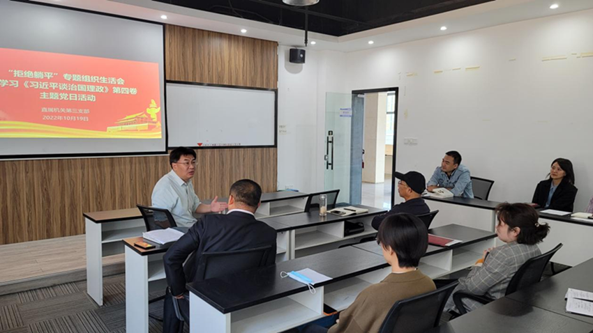 直属机关第三支部高度重视此次专题组织生活会,会前做了认真细致的准备:支委会和党员开展了深入的谈心谈话;各个部门都组织学习了《习近平谈治国理政》第四卷,传达了学院党委关于“拒绝躺平”组织生活会召开的具体要求;通报了组织生活会征求意见的情况。