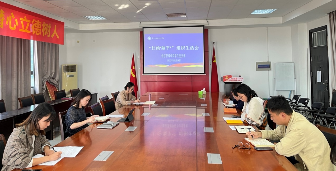 10月19日,经济管理学院学生党支部在C3-202会议室召开“杜绝‘躺平’”专题组织生活会,党总支副书记周丽雅全程到会指导,支部全体党员参加。组织生活会由学生党支部书记王超慧主持。