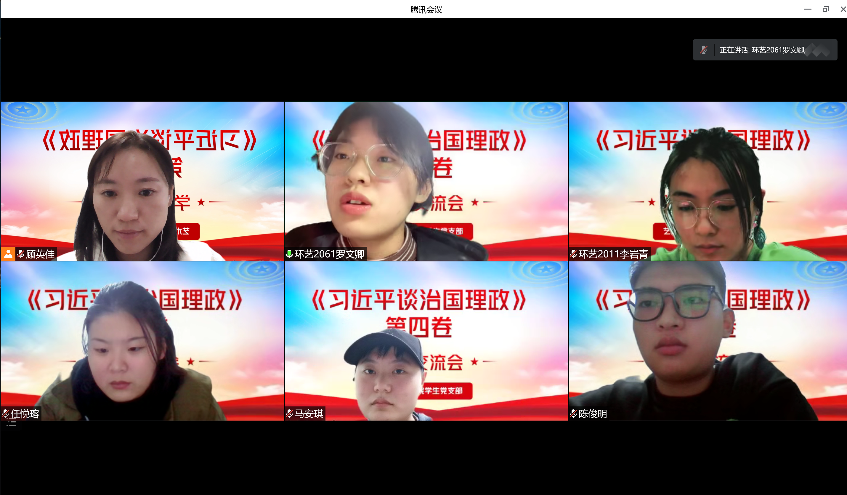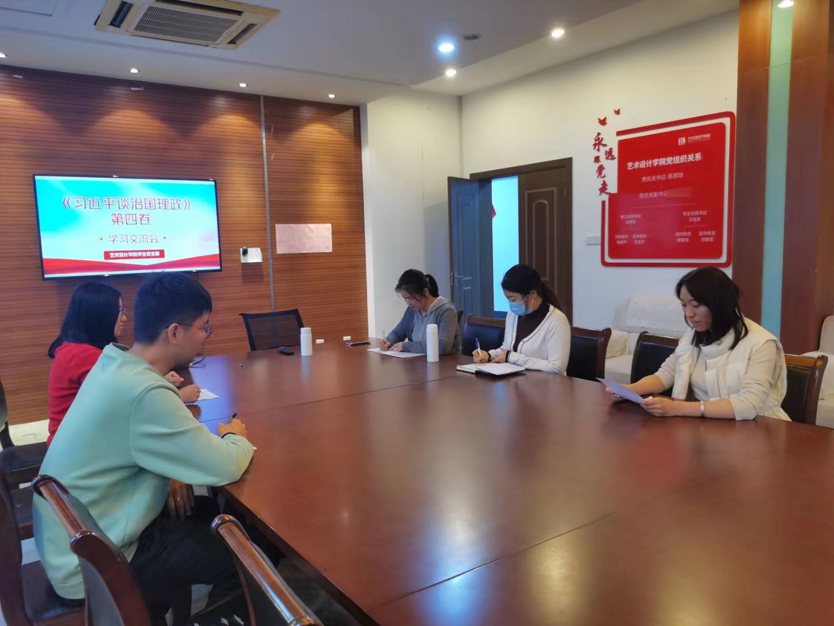 10月26日,艺术设计学院学生党支部开展了党的二十大报告和《习近平谈治国理政》学习交流会。本次会议的主题为“坚持党的全面领导”,支部12名教师和学生党员通过“线下会议+腾讯会议”的形式参与并交流了心得体会。